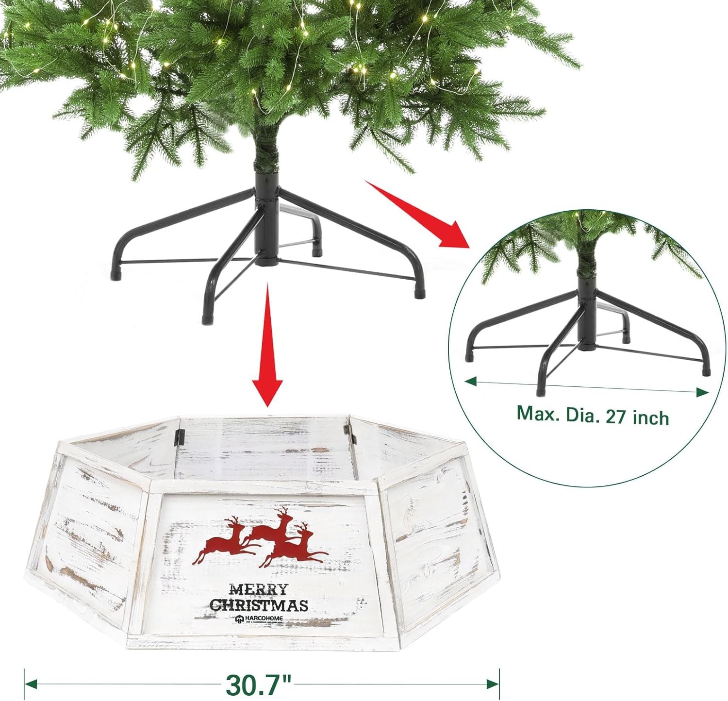 Free eBay listing template designed by dewiso.com Wood Christmas Tree Collar, Wooden Hexagon Tree Base Cover, Handcrafted Natural Wooden Tree Ring, Vintage Weathered Tree Skirt for Xmas Decor, Rustic (Distressed White) FREE AND FAST SHIPPING! About this item RETRO APPEAL: Add a rustic touch to your holidays with our solid wood Christmas Tree Collar, featuring a distressed finish for a classic, vintage look DURABLE HOLIDAY ESSENTIAL: Crafted from premium materials, our Christmas Tree Collar delivers robust stability, safeguarding your tree from pet play; Burr-free and odorless, ensuring a safe and enjoyable holiday ambiance for all CUSTOM-FIT HOLIDAY CHARM: Crafted for a flawless fit on 9ft trees, our 26" top diagonal x 30.7" bottom diagonal x 9.8" high tree cover enhances your decor with a perfect, tailored fit; verify your stand dimensions for a seamless setup EASY ASSEMBLY AND STORAGE: With customized latch hinges and small pins, our tree collar assembles and disassembles with ease. Post-season, it stores compactly, conserving your valuable space WRINKLE-FREE HOLIDAYS: Our tree collar with custom latch hinges and pins ensures a smooth, wrinkle-free look all season. Simplify your holiday decor with effortless setup and no stress Product We offer a 30-Day Return Policy on items which you are not completely satisfied with. You have the option for a full-refund or an exchange of the item. No returns are available on items shipped outside of the US . Shipping We offer Free Shipping to the US and ship within 2 business days of payment, usually sooner. We use UPS express shipping. That's why your products are usually delivered within 3 days . Contact We try our very best to make sure every customer is completely satisfied. If there's a problem , message us! We're happy to help. 24/7 live chat available.