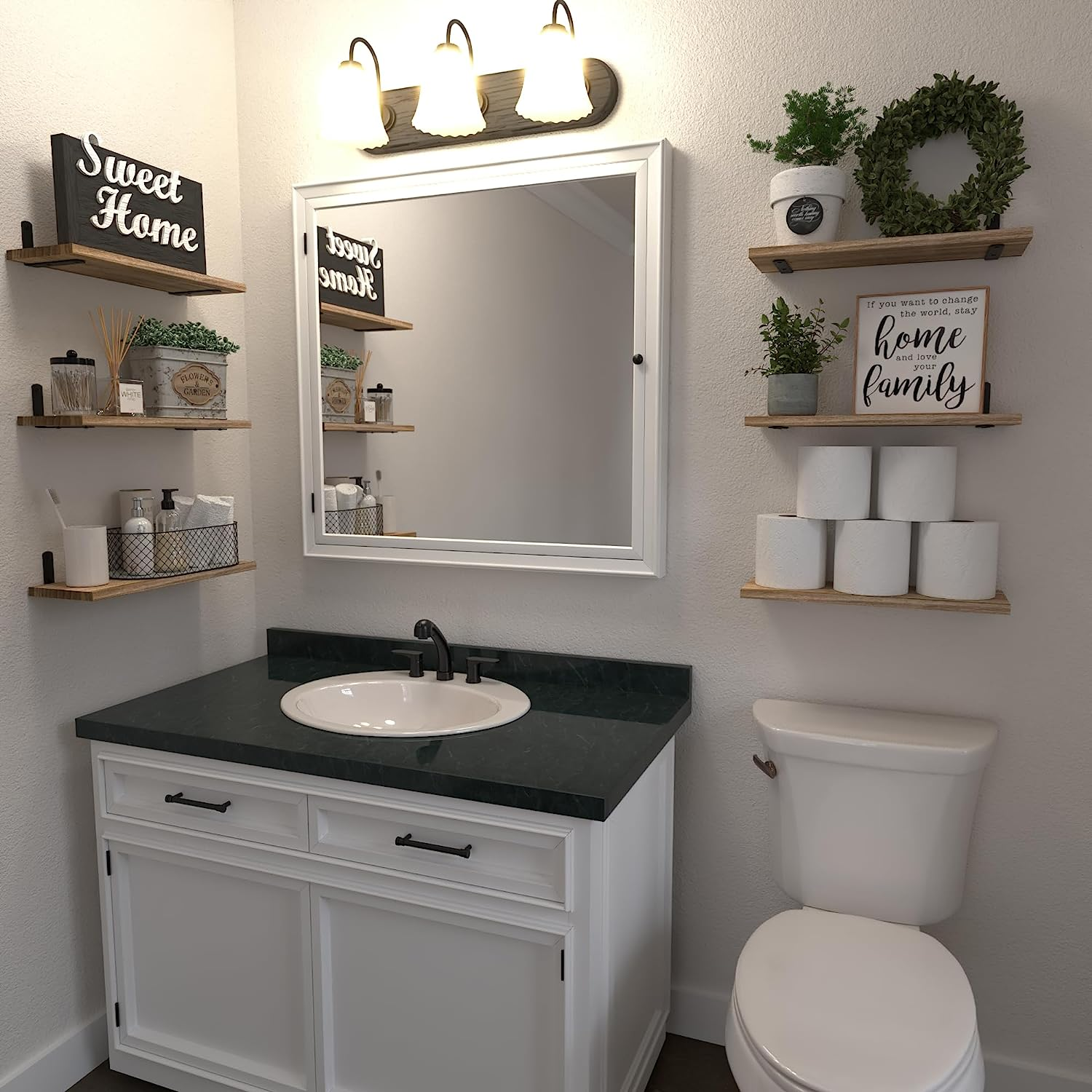 Store New Arrivals Add to Favorite View Feedback Contact Wood Floating Shelves Set of 6, Shelves for Wall Decor, Farmhouse Shelf for Bedroom, Bathroom Storage Shelves, Book Shelves for Living Room - Rustic Brown Description Item model number HM011A Style Farmhouse Number of Items 6 Shelf Bracket Shape L-shaped Shelf Thickness 0.6 Inches Unit Count 6.0 Count Room Type Bathroom, Bedroom, Living Room, Nursery, Office Weight capacity Maximum weight: 40 Pounds Assembly Required Yes Product Dimensions 6"D x 16.5"W x 0.6"H Material Paulownia Installation Type Wall Mount Product Name Bahtroom Shelves, Display Shelves, Floating Shelves, Shelves for Wall Decor, Wall Shelves Finish Type Wood Specific Uses For Product Books, Cosmetics, Decorative Items, Plants, Toiletries Included Components Hardware Model Name HM011A Assembly Instructions Description DIY Number of Shelves 6 Special Feature Space Saving Weight Limit 40 Pounds Item Weight 6.54 pounds Mounting Type Wall Mount Shelf Type Floating Shelf Color Rustic Brown Furniture Finish Wood Shape Square Recommended Uses For Product Bathroom, Bedroom, Kitchen, Living Room Product Care Instructions Wipe with Dry Cloth Size 16.5 Inch Floating Shelves for Wall Storage Set of 6 - The size of the WOPITUES floating shelves for wall is 16.5*6*0.6 inches. WOPITUES Floating Wall Shelves for Bathroom/Bedroom Set of 6 could give you extra storage space in the bathroom, bedroom, guest bathroom, kitchen, and living room. You can install our floating shelves for wall anywhere you like. Let’s make life simpler. Sturdy & Easy to Assemble- The L-shaped metal brackets are durable, with a capacity of 40Lb. You don’t need to worry about it falling off. WOPITUES wood floating wall shelves for bathroom are super sturdy, very easy to install, and less damage to the wall. No need to worry about stability. Just put your items on, and our wall shelves can bear the weight of your love. Natural Wood & Wall Mounted Design - Our 6 sets bathroom floating shelves for wall are made of wood which grows naturally, so each piece of the board has unique natural wood grain and color. Through the simplest charcoal roasting process, we restore the carbonized color and texture of the wood itself. Our bathroom floating shelves for wall make full use of wall, and let your bedroom and bathroom look so cute. Rustic Farmhouse Style - Our farmhouse style rustic floating shelves for wall decor measure 16.5*6*0.6 inches, which can provide an extra storage space wherever needed. WOPITUES floating wall shelves fits rustic/modern farmhouse style, traditional/industrial style, vintage style, or minimalist style home décor. Add some warm and sweet atmosphere to your bedroom, living room, bathroom, office, and kitchen. You can use it as a corner shelf, floating plant shelf, book shelf, and cat shelf. Commitment From WOPITUES - We deeply understand how important customer's trust is to us, and thus we have always been making customers' needs our top priority. To help better our products and services, any sincere advice from you will be fully accepted. Each of these wall book shelves is handmade, so each one is unique and beautiful in its own way. If you are satisfied with our shelves, we would be greatly appreciated it if you could share your user experience with others as a reference. Product description WOPITUES Floating Wall Shelves Set of 6, Rusitic Wood Floating Shelves Wall Mounted for Bathroom Decor WOPITUES Floating Wall Shelves Set of 6: Solid Wood Easy to Assemble Hanging Design Carbonized Color Bathroom/Kitchen/Bedroom/Living Room Storage For Your Wall Decor Max Weight Capacity : 40 lb. Corner shelves, floating plant shelves, book shelves and cat shelves. WOPITUES Floating Wall Shelves Set of 6, Rusitic Wood Floating Shelves Wall Mounted for Room Decor WOPITUES Floating Wall Shelves Set of 6, Bathroom Organizers and Storage Tools required: Drill Screwdriver NOTE: Each piece of our bathroom shelves wood has a unique pattern and color. **No pre-drilled holes** Wall Shelves Set of 6 Size of Shelves: 15.7*6*0.6 inch Give you extra storage space. Try to DIY your own storage space with WOPITUES Wall Shelves Set of 6. Exactly what you needed for your living room/bathroom/bedroom/kids room. Easy to Assemble & Solid Wood Solid Wood Unique wood grain of our wall shelves can add some rustic charm to your room. Super Sturdy Max Weight Capacity : 4 0 lb . Package Includes: Wood Boards (**no pre-drilled holes**) x 6 L Shape Metal Bracket x 12 All Hardware User Manual x 1 WOPITUES Floating Wall Shelves Set of 6, Rusitic Wood Floating Shelves Wall Mounted for Bedroom Decor and Dorm Decor WOPITUES Floating Wall Shelves Set of 6, Rusitic Wood Floating Shelves Wall Mounted for living Room Decor WOPITUES pursuing our dreams, which is bringing natural wooden products to everyone. Our woods are all solid wood. We are committed to bringing a better experience to everyone. Let's make our life and the world a better place. ABOUT US We offer the best prices around on high quality products. Our E-store includes media such as books, movies, music and games while offering electronics, toys, sporting apparel, clothing, tools, general home, garden items and more. SHIPPING We are always working hard to ensure your package arrives as soon as possible. Please understand that some factors like weather, high postal traffic, and the performance of shipping companies are outside of our control. We offer free shipping to the lower 48 states and ship within 2 business days of payment, usually sooner. We do not accept P.O. Boxes. Please provide a physical address. For shipping outside of the continental USA, we only use eBay's Global Shipping Program.The item is shipped to KY and then sent to the rest of the world. International customers are responsible for all duties and taxes. Continue to check out in order to calculate costs for shipping the item to your country. Messages regarding eBay's Global Shipping Program MUST be directe