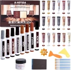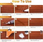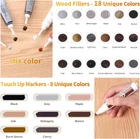 WOOD REPAIR KIT INCLUDES: Our wood floor scratch repair kit comes with 18 colors of wood fillers, 8 colors of furniture markers touch up, 7 brushes, 2 plastic scrapers, 1 wood putty, 1 sandpaper, 1 pair of glove and 1 color chart EXCELLENT FIX ANY COLOR WOOD: The hardwood floor scratch repair kit can restore nicks, stains, scuffs and discoloration on any wood floors and furniture like beds, shelves, cabinets, tables, frames, doors, laminate, baseboard, veneer and much more. This is ideal for rejuvenating your furniture RICH AND COMPLETE COLORS: Colors to match your home include common styles, the vinyl laminate floor repair kit wood fillers are available in 18 colors: white, ivory, white maple, maple, oak, walnut, cedar, bamboo yellow, light gray, cherry, auspicious wood, red oak, teak, black walnut, black, red sandalwood, red walnuts, french gray. The touch up wood markers come in 8 colors: black, oak, maple, cherry, walnut, mahogany, grey, burnt sienna. Or blend different colors together to perfectly match the color you want EASY TO APPLY: Choose or mix the color that best suits the piece of furniture you need to restore. Use the wood filler into the blemish with brush, and then scrape off the excess with scraper and wait for it to dry. For large hole, you need fill the hole with wood putty firstly and let it dry, then use wood filler to repair. The furniture touch up markers can be used to touch up the superficial scratches or to draw wood grain QUICK FIX WOOD SCRATCH: Wood paint for furniture can perfectly match the colors of your wood furniture perfectly, allowing you to professionally handle all kinds of wood furniture repairments yourself, saving you time and money Product Description Are You Still Facing These Problems At Home? Has your beautiful wood furniture been scratched by pets? Or did the utilitarian wood cabinets suddenly have cracks? Are you still bothered by the ugly nail holes in the wooden table? Don't worry, this laminate floor repair kit can help you solve it, so that broken furniture is no longer a problem! This wood repair kit contains up to 39 pieces to ensure you can repair all kinds of damages to wooden surfaces. Mix Color If the color is not what you want, you can mix fillers to perfect match your wood floor and furniture. For example, you can mix black and white together to make gray. Tip: If you think the color is too dark, you can add some white to lighten the color, if it is too light, you need to add some dark color close to the surface of the wood to deepen the color. Wood Filler 18 Unique Colors: white, ivory, white maple, maple, oak, walnut, cedar, bamboo yellow, light gray, cherry, auspicious wood, red oak, teak, black walnut, black, red sandalwood, red walnuts, french gray. Tip: Please keep away from water and let the surface dry after repair. Wood Marker 8 Unique Colors: black, oak, maple, cherry, walnut, mahogany, grey, burnt sienna. It is perfect for scratches and discoloration on the surface of your home furniture. Tip: The wood touch up markers can be used to touch up the superficial scratches or to draw wood grain. Wood Putty The wood putty is used to fill deep cracks or larger holes. As the water evaporates, large areas of wood putty may become sunken as it dries. Please fill the wood putty again until it is nearly flush with the surface of the furniture. Tip: If you want the wood putty to dry faster, you can use a hair dryer to dry it., keep completely dry and then apply color. How to use the wood touch up markers/ wood fillers/ wood putty? For Superficial Scratch 1. Clean the wood surface and choose a touch up marker of a similar color to the furniture. 2. Use the touch up marker to draw on the scratches. 3. Wipe off excess repair paint and let it dry. 4. IF need, repair the steps 2-3 to deepen the color For Small Scratch 1. Clean up, choose or mix colors similar to the furniture and apply on the surface. 2. Touch up the area with a scraper. 3. Wipe off the excess repair filler and wait for it to dry. 4. After drying, you can use the marker to draw wood grain. For Large Hole 1. Clean up, fill the hole with wood putty, press firmly and smooth it with a scraper. 2. Wait for the wood putty to dry completely. 3. Repair with wood filler and wait for it to dry. 4. If need, you can use the touch up marker to draw wood grain. The Package Includes: 18*colors of repair fillers + 8*colors of repair marks + 1*wood putty + 7*brushes + 2*plastic scrapers + 1*sandpaper + 1*pair of gloves +1*Color Chart. This professional wood scratch repair kit can deal with different levels of scratches, stains or cracks for any wooden furniture, such as floors, door, cabinet, wood crafts, stairs, moldings,wood veneers, frames, wood beds, bookcases and other wood surfaces in your home! In order to make it more convenient for you to use, we are equipped with a complete set of brushes, scrapers, sandpaper, gloves, etc. After receiving the package, please check whether it is complete or not. If you have any questions, please feel free to tell us by email.