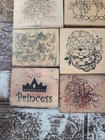 Wood Mounted Stamps Rubber Stamp Lot Of 17 Assorted Scrapbooking Craft Supplies. Some have names on side of stamps. Good preowned condition