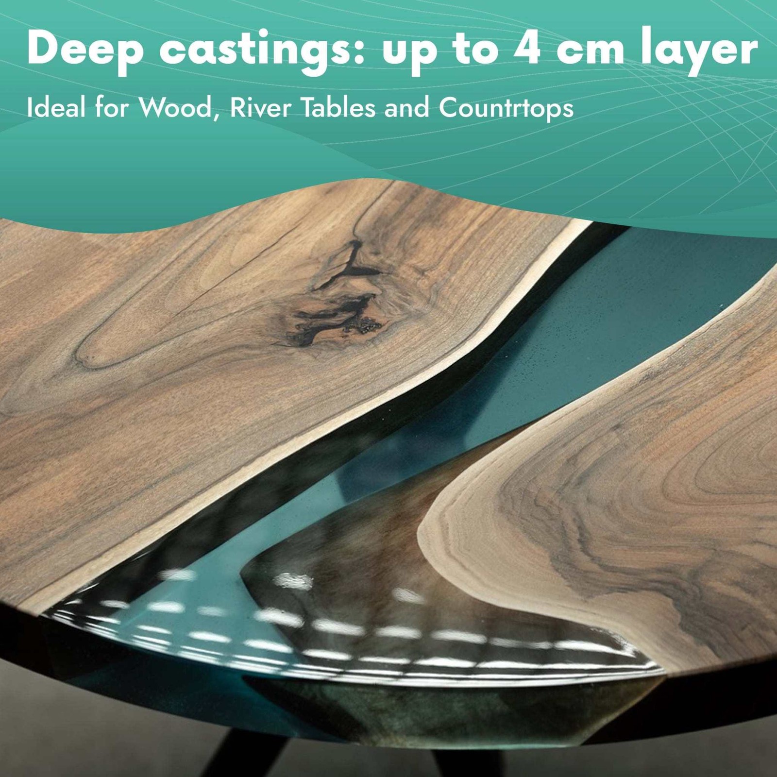Description: Artline Wood PRO Epoxy Resin, 4 kg. i Deep casting resin ideal for wood projects, tables, countertops etc. Liquid. UV-protected. Wood PRO is self-leveling, which means you won’t have much trouble getting a consistently smooth surface when using it. This feature that makes this epoxy resin an excellent choice for beginners. Due to its low viscosity it has excellent bubble release. It can take up to 72 hours to cure. This resin is compatible with all our dyes or pigments and is therefore suitable for those who want to create artistic finishes for their tables or countertops. Kit includes resin, hardener and multilanguages instruction. Recommended for: • Concrete & Wood slabs • Countertops and River tables • Large surfaces • Porous surfaces Key Advantages: • Crystal clear • Ideal for countertops and River tables • Low Viscosity • Fast bubble release • Yellowing protection • Odorless • Non-Toxic • No Vocs • Self-Leveling Photo: