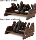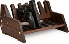 Perfect Gun Organizer for Pistol Collection Key Features: Perfect Gun Organizer: This gun display stand is designed to hold up to 6 pistols (or revolvers), providing a convenient and tidy way to organize your guns. The stand is handcrafted from durable ash wood , known for its strong structure and attractive grain patterns. Versatile Functionality: You can place your pistols in the stand either vertically , with the muzzle up or down, depending on your preference. For larger guns , the reclined barrel position offers additional support. The precision-cut grooves ensure your firearms stay securely in place. Aesthetic Design: The display stand is made of natural ash wood with a rich brown finish , highlighting its beautiful wood texture. The design not only organizes your firearms but also adds a noble and aesthetic touch to your collection. The base also features compartments for storing bullets or other accessories. Easy Assembly: The gun rack is easy to assemble with clear instructions. Despite its sturdy construction, it is surprisingly lightweight , allowing you to easily move and position it on your display shelf. Secure & Protective Use: To prevent damage to your firearms, the barrel rests and carpeted shelf are felt-lined for protection against scratches. The shelf features compartments to securely hold the guns in place, and the anti-slip silicone pads on the base ensure the rack remains stable without damaging surfaces.