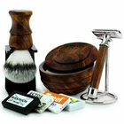 6 PIECE ROSEWOOD SHAVING SET by Haryali London Set Includes: 1 x Safety Razor 1 x Synthetic Brush 1 x Brush Holder 1 x Razor Holder 1 x Shaving Bowl 1 x Shaving Soap Classic Safety Shaving Razor Classic 3 Piece Model - Double Edge Safety Razors have been on the market for over a century - it just works! An outstanding Design example and using some of the finest chrome plating on the market available today, the razor head is sure to give you that traditional wet shave, vintage feel. Easy to use, the single edge will get you that clean, old school shave. This Razor is carefully designed for Perfect Balance and Best Performance. Details : Razor Length: 11cm Weight: 90cm Razor Head: 4 x 3cm Material: Pure Rosewood & Chrome Plated Brass Synthetic Badger Hair Brush High- quality synthetic fibre and a home grown, global innovation. The synthetically produced, particularly durable hairs are processed by hand and are qualitatively equal to the precious natural material silver tip badger in every way with the bonus of being less sensitive and more durable! LONG-LASTING AND ECO-FRIENDLY: Made with synthetic hair, this shaving brush is 100% cruelty-free and vegan-friendly. Plus, the eco-friendly synthetic bristles are more durable than real bristles, so you won't have to replace this shave brush with a new one - at least not anytime soon. SHAVE YOUR BEARD EFFORTLESSLY: Applying the soap with the shaving brush has many benefits. The fluffy synthetic bristles hold lots of water so the lather will be thicker. The brush will spread the foam thoroughly and lift the facial hair, so that the razor can cut them from the base. Shaving has never been easier! NO MORE RAZOR BURNS: Do you suffer from razor burns after every shave? The synthetic shaving brush will massage your skin and soften the beard so that you won't have to add too much pressure with the razor. The massage will also increase the blood circulation, which will protect your skin from irritations. Your skin will be smooth and soft! Details : Total Height: 10cm (5cm Handle & 5cm Hair) Hair Grade: Synthetic Handle Material: Rosewood Shaving Bowl with Lid Our Rosewood Model is easy and comfortable to hold, perfect for creating a great lather. A quality, smart looking Pure Natural Rosewood Shaving Bowl that will look perfect in any Shaving Den. Details : Total Height with Lid: 3.6cm External Diameter: 10cm Internal Diameter: 8.5cm Inside Depth: 2.5cm Weight: 136g Material: Pure Natural Rosewood Shaving Premium Soap Our Premium Soap will give you that luxurious shaving experience you are striving for. Producing a creamy and rich lather it will keep your skin soft and moisturised, keeping it safe through the aggressive act of shaving. Produced in Scotland. Shaving Razor Stand Especially designed to keep your new razor when not in use. This stand provides not only for a stunning and practical display but also for the ideal way to expand your razors life by ensuring it dries quickly, keeping it safe from water damage and bacteria. Made of High Grade Stainless Steel this stand will not rust, stain or decay in any form. Details : Height: 10cm Base Diameter: 5cm Material: Chrome Plated Stainless Steel Shaving Brush Stand The perfect holder to keep your Brush safe. Similar to the Razor Stand this Holder serves not only as a appealing way to keep your brush but also for the ideal way to expand your brush life by providing a very convenient and easy maintenance. Keep your brush in your stand after use as this ensures it will dry as quickly as possible keeping the bristles in the correct position, this is keep it safe from water damage, decay and bacteria. Built to last in sturdy plastic this stand will stain or decay in any form. Details : Height: 7.5cm Width: 4.5 - 5cm Base: 5 x 5cm Brush Holder Diameter: approx 2.8cm Material: Plastic 100% Satisfaction Guaranteed Manufactured and Hand Crafted in the UK Comes safely packed in a cardboard box.