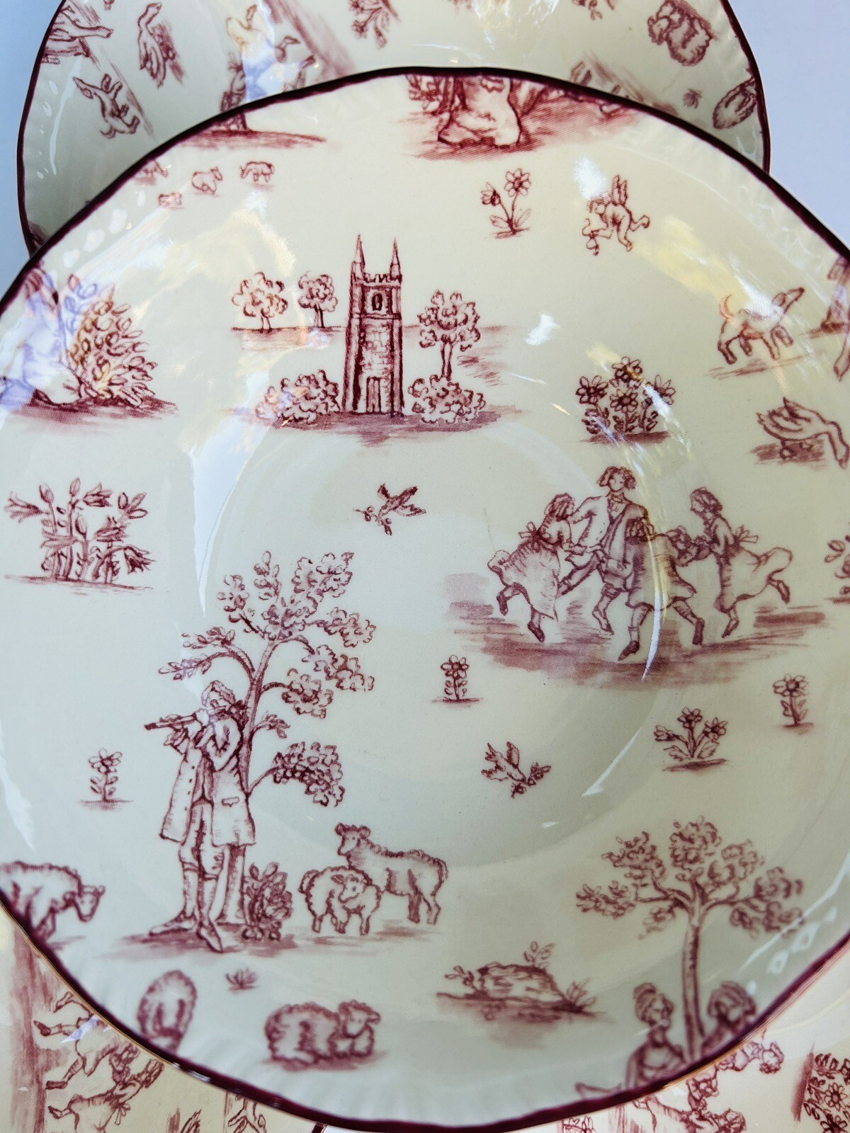 Enhance your dining experience with this exquisite set of (6) Wood & Sons soup bowls and plates. Crafted from fine English porcelain, this bowl set adds a touch of elegance to any table setting. The set includes soup plates and plates, perfect for serving soup or other delicious dishes. With its timeless design and premium quality, this Wood & Sons tableware set is a must-have for any pottery and glass collection. Ideal for both formal and casual occasions, this bowl set is a perfect addition to your decorative cookware, dinnerware, and serveware. Enjoy your meals in style with this beautiful set of bowls and plates.