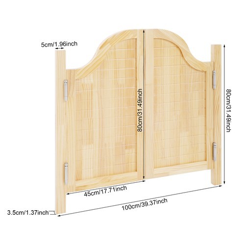 Wood Swinging Door Wall-mounted Double Half Cafe Doors Saloon Bar W/ Metal Hinge Description Do you want to achieve space utilization for your home or store without blocking air circulation? This partition door will be able to fulfill your needs well, not only to protect your privacy but also to play a certain decorative role. It is made of high-class pine wood material with a painting process, which can realize durability. The flexible hinges allow you to easily open and close the partition door. Key Features High-end Materia ls : Pine wood with a painting process makes this product strong and durable, anti-impact and scratch-resistant , so it can remain beautiful and practical for a long time. Powerful Function: This product can improve the poor layout of your store or home, bring a better appearance to your area, and promote the circulation of fresh air, thus providing you with a comfortable indoor environment. Space-saving: Compared with traditional partitions that usually use solid wall partitions to take up more space, the product can expand space utilization, which allows people to realize partitioning without taking up too much space, making the whole space more spacious and bright. Elegant Appearance: It is available in a simple and generous log color that adds beauty to the space and is compatible with most decorating styles. Easy Installation: Simple construction and a full complement of accessories allow this product to be up and running in no time. Effortless Cleaning: The smooth surface and simple structure allow you to easily wipe dirt from this product with a soft towel(not included), and it has a certain distance from the floor, allowing you to clean the floors conveniently. Ideal Gift: It is a unique and practical way to decorate your home, so you can send it to your family and friends on holidays, birthdays, housewarmings, and opening ceremonies. Buy with Confidence: We stand behind all our guests and look forward to assisting you with your purchase. It is our pleasure to answer your confusion and questions. The end of the story between us is not "we sell and you buy". Details 180° Opening and Closing: Four premium stainless steel hinges allow for 180-degree opening and closing, making it easier for people to get in and out and use more space. Burr-free Edges: The round and burr-free edges are gentler on your skin when using and cleaning this product without scratching your hands. Application It is suitable for cafes, shopping malls, bars, reception rooms, clubs, living rooms, balconies, terraces, wine cellar entrances, kitchen entrances, and partitions, and can also be used as home decorations, and holiday and birthday gifts. Hinge Installation Steps Hands-on the doorpost to make holes in the wall and install expansion bolts(not included). Fasten the hinges to the doorpost and the door. Insert an Allen key into the adjustment hole to each hinge, and insert the pin. Adjust the bottom hinge in the same way. All hinges must be installed at the same time. Specifications Color: Log Color Material: Pine Wood, Stainless Steel Process: Painting Style: Modern Assembly Required: Yes Mount Type: Door-mounted Pattern Type: Horizontal Stripe Opening and Closing Angle: 180° Number of Doors: 2 Thickness: 35mm/1.38in Each Door Size(L*H): 45*80cm/17.71*31.49in Each Doorpost Size(L*W): 5*3.5cm/1.96*1.37in Product Size(L*H): 100*80cm/39.37*31.49in Gross Weight: 13kg/ 28.66lbs Net Weight: 12.35kg/ 27.23lbs Package Size: 82*52*10cm/ 32.28*20.47*3.94in Package Included 1* Partition Door 4* Hinges All Accessories for Assembly Payment Delivery details Terms of sales About us Contact us Payment We accept ebay payment 。 Fees such as import duties, taxes are not included in the item price or shipping costs. These charges are the buyer's responsibility. Delivery details Shipping: 2-9 working days to: USA Terms of sales We maintain high standards of excellence and strive for hundred percent customer satisfaction. Feedback is very important to us. We hope that you contact us immediately before you give neutral or negative feedback, so that we can address your concerns. It is impossible to address issues if we do not know about them! About us Your satis faction is our ultimate goal. We work hard to earn your trust and future business. Our certified technicians have tested each item before shipping. The unit comes with 1 year limited warranty on all manufacturing defects. a) If you receive a defective item, you may return it or ask for a discount. Please contact us within 14 days after you receive the package. b) What you returned must be intact and in its original packaging as re? u. Customer is responsible for shipping costs of the returned item. c) We will cover the cost of shipping back t with the shipping rate indicated in the registration page. We will send you a new unit or refund the full payment you paid. Thank you. Contact us Business Hour Business Hour: Monday To Friday: 8:30 AM to 5:00 PM (Beijing China time) Due to time zones, our reply to your questions may not be immediately. But within above working time, we will reply your email within 24 hours. If it's non-workdays, please kindly be patient and wait till Monday. Please contact us with ebay message. Please feel free to contact us if you have any questions. Monday To Friday: 8:30 AM to 5:00 PM (Beijing China time) Due to time zones, our reply to your questions may not be immediately. But within above working time, we will reply your email within 24 hours. If it's non-workdays, please kindly be patient and wait till Monday. Please contact us with ebay message. Please feel free to contact us if you have any questions. Brand TBvechi Assembly Required Yes Mount Type Door-mounted Pattern Type Horizontal Stripe Opening and Closing Angle 180° Number of Doors 2 Thickness 35mm/1.38in Each Door Size(L*H) 45*80cm/17.71*31.49in Each Doorpost Size(L*W) 5*3.5cm/1.96*1.37in Product Size(L*H) 100*80cm/39.37*31.49in Gross Weight 13kg/28.66lbs Ne