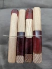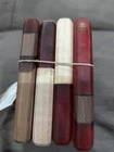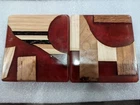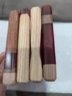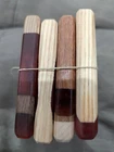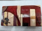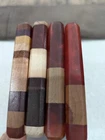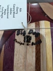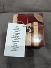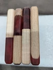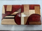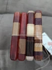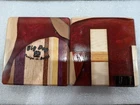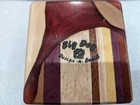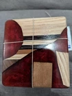 Set of 4 Wood & Epoxy Handcrafted Coasters - Bundled with tag (I removed to show each coaster) - Sider's Woodcrafting Wood Species in Coasters: Ash Cherry Canary Wood Jaloba Leopard wood Maple Curly Maple Bird's Eye Maple Padauk Purple Heart Walnut Wenge Yellow Heart Zebrano Flame Birch Size: 4" x 4" Square 1" thick Very well crafted and attractive. Great conversation piece. Thanks for your interest!