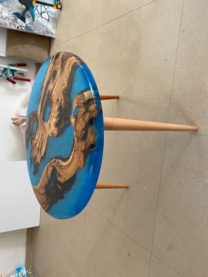 We Accept Custom Order too please contact us. Elevate your living space with our Modern Round Epoxy Coffee Table, where contemporary design meets timeless elegance. This stunning piece seamlessly combines the sleek sophistication of blue epoxy resin with the warmth and character of natural wood, creating a focal point that transcends trends. Key Features: Contemporary Aesthetics: The modern, round silhouette of this coffee table makes it a chic addition to any living room. Its clean lines and minimalist design contribute to a contemporary aesthetic that effortlessly complements various interior styles. Blue Epoxy Resin Top: The tabletop is adorned with a sleek blue epoxy resin finish, adding a touch of luxury and depth to the surface. The resin not only provides a high-gloss shine but also ensures durability, making it resistant to scratches and stains. Versatile Functionality: Whether you're enjoying your morning coffee, hosting friends, or simply displaying your favorite decor items, this coffee table offers versatile functionality. Its round shape encourages easy conversation and creates a welcoming centerpiece in your living space. Handcrafted Excellence: Each coffee table is meticulously handcrafted by skilled artisans, ensuring a level of excellence that goes beyond mass-produced furniture. The attention to detail and dedication to quality craftsmanship make this piece truly unique. Easy Maintenance: The combination of blue epoxy resin and solid wood not only enhances aesthetics but also facilitates easy maintenance. Simply wipe the surface with a soft cloth to keep it looking pristine. Ideal for Modern Living Spaces: Whether you're furnishing a contemporary apartment, a stylish loft, or a modern home, this coffee table effortlessly enhances the ambience of your living space, making a statement without overpowering the room. Specifications: Dimensions: 12"x12" Inches Materials: High-quality wood, epoxy resin Colors: Blue Finish: Glossy and durable Shipping and Packaging: * This is Only table top, Leg /base is not included , If you have any kind of query ,please message us * We can make the table top similar to this as it is handmade or natural process you will not get the same as shown in picture but you will get the similar one * The table top is made in Agra India & fully handmade. * The top will be delivered by FedEx or DHL free of cost door to door. * If there is any local tax, custom duties or Vat will be paid by the buyer at the destination. * The parcel is dispatch with proper packing & fully insured covering all kind of risk. Thanking You...