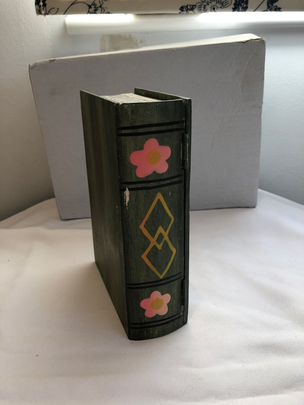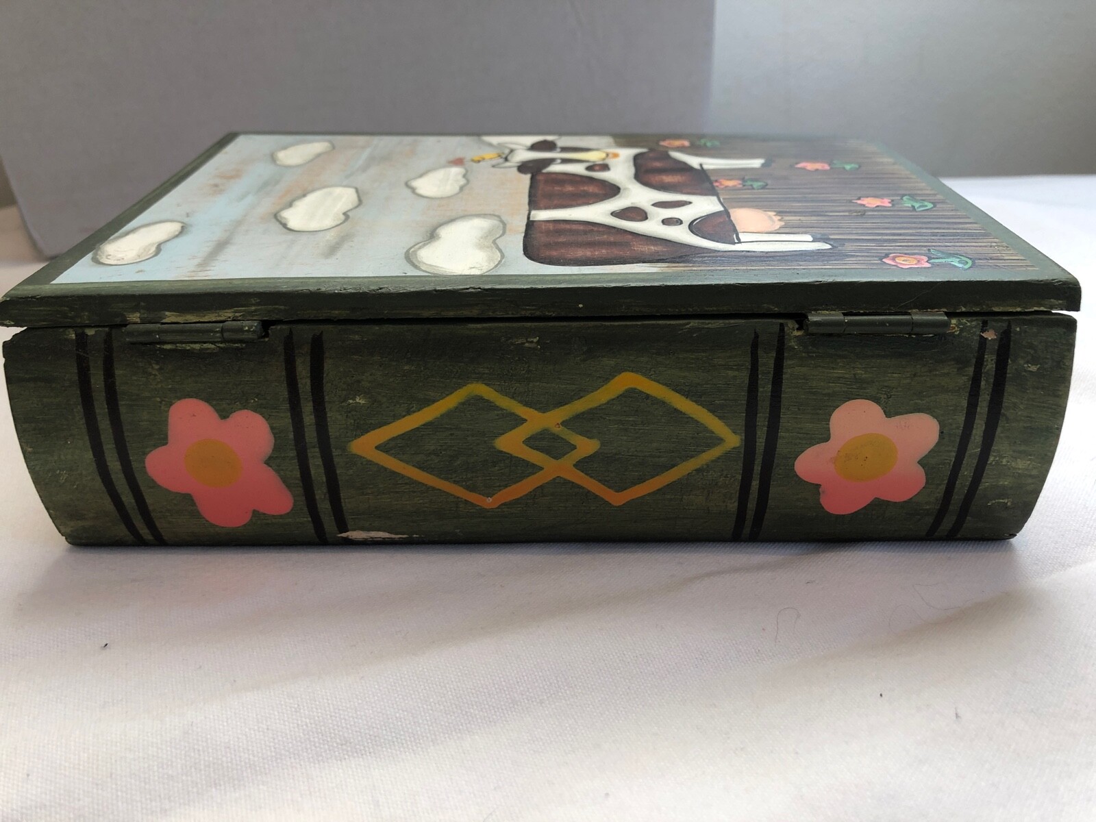 Wooden Box with hinged lid Hand painted Cow - like a Book - 19.8cm x 14cm x 6cm