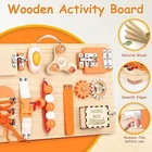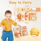 Toddler Busy Board: The wooden busy board includes 10 different activities to keep your child busy and help them develop fine motor skills. Develop Basic Life Skills: The busy board restores life scenes and is equipped with buckle, shoelaces, Velcro and other activities to help children learn independent living skills early. Great Sensory Toys: Montessori busy board comes with door latches, gears, fidget spinner, music box and more sensory activities. There is also a hidden mirror and picture frame behind the door latch for a surprise. Great sensory toys for toddler including autistic children. Travel Busy Board: This travel busy board is made of wood material, lightweight, with a portable handle design, easy for kids to carry. Perfect for car travel, plane travel or anywhere. Perfect Gift for Kids: The Busy Board has a variety of activity skills and is full of sensory exploration fun. The perfect Montessori educational toy gift for boys girls.