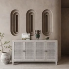 This cabinet is designed with minimalist style along with a stable structure to make a unique statement, which provides powerful practicality rather than a household adornment. With plenty of space to offer, utilize the casual four-door cabinet featuring two-tier storage to minimize clutter while keeping select essentials within easy reach, or display your favorite décor on the spacious upper counter. With 4 shutter doors add beauty and enhances the artistic sense of the entire home. Features The sideboard buffet cabinet combines practicality and ornamentation, featuring a shabby chic white wash finish. This cabinet is equipped with 4 shutter doors, adding a touch of elegance and sophistication to your space. The shutter design not only offers aesthetic appeal but also allows for easy Free Shipping Over $49.99* Details Wooden Cabinet Sideboard Buffet Accent Cabinet 4 Shutter Door Product Description: This cabinet is designed with minimalist style along with a stable structure to make a unique statement, which provides powerful practicality rather than a household adornment. With plenty of space to offer, utilize the casual four-door cabinet featuring two-tier storage to minimize clutter while keeping select essentials within easy reach, or display your favorite décor on the spacious upper counter. With 4 shutter doors add beauty and enhances the artistic sense of the entire home. Features The sideboard buffet cabinet combines practicality and ornamentation, featuring a shabby chic white wash finish. This cabinet is equipped with 4 shutter doors, adding a touch of elegance and sophistication to your space. The shutter design not only offers aesthetic appeal but also allows for easy found to your belongings. This cabinet is made of high quality MDF and fir wood for high stability and durability. The interior contains adjustable shelves to provide ample storage for your belongings. The cabinet is hinged on fully concealed euro-style hinges to maintain its minimalistic look. Weight capacitycabinet top - 80lbs, shelves - 25lbs. The simple design makes assembly very easy, all hardware and detailed instructions are provided, it can be installed step by step following the instructions, which can help you complete the assembly as soon as possible.