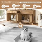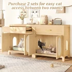 Product Feature Multi-Purpose Pet Furniture: This versatile cabinet serves as both a litter box enclosure and a cozy cat house. With its stylish design, it also functions beautifully as a side table or coffee table next to your sofa. Place decorative plants, books, or ornaments on the top to enhance the elegance of your living space. Spacious Storage: Features a spacious top drawer to neatly organize cat essentials like litter scoop, trash bags, toys, grooming tools, or treats—bringing a cleaner and more organized home environment. Premium Cat Scratch Pads: The cabinet doors are fitted with natural sisal scratch pads that keep your cat safe while allowing them to satisfy their scratching instincts, protecting your furniture from damage. Expandable Two-Room Design: Buy two units to create a connected cat suite! Side pass-through holes allow cats to freely move between two cabinets—use one for the litter box and the other as a cozy resting space. Sealing Strip: Sealing strip reinforces the structure, reduces gaps, and protects cats from scratches. Self-adhesive for adjustable placement. Fit Most Cats : With an internal usable size of 28.34"x18.97"x22.83"H, this furniture fits most cats and litter boxes, gives your cat the space to hide and poop at ease. The door can conceal the litter box inside, reducing odor while also allowing easy access for cleaning. Product Description Features Net Weight 64.32lbs Weight Capacity 176lbs Material MDF Assembly Time 1hour