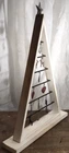 Wood Christmas Tree Triangle Frame with Metal Star + Charms 21-5/8” Tall. Measurements approximately: 21-5/8” tall 15” wide 3” deep