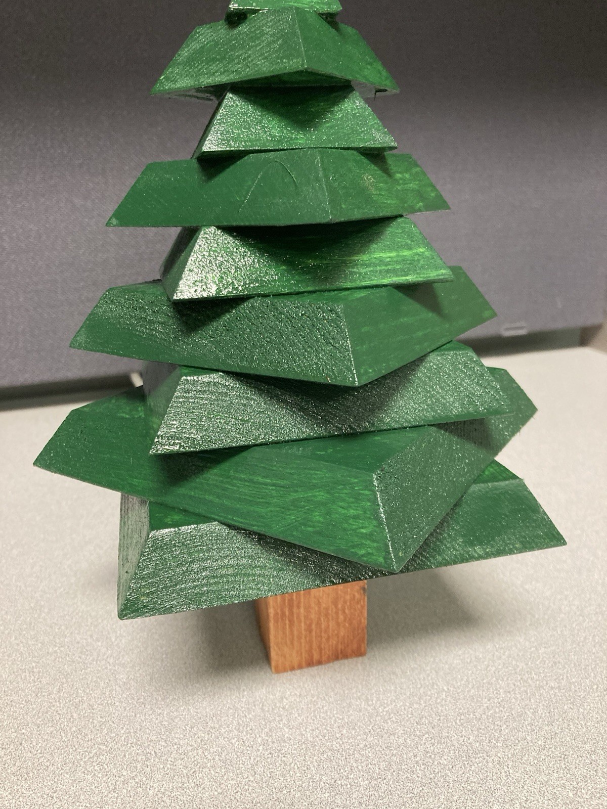 Wooden Christmas tree center piece or for displaying on a mantle. 10in h x 7in w x 7in d
