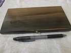 Impress the woodwind section with this beautiful, custom made wooden clarinet reed case. Case has plexiglass reed surface with a black velvet interior, and is secured with a sliver clasp. Made of a deeply warm honeyed walnut wood, case easily fits 8 reeds. At 8 inches by 4 inches by .75 inches, this case easily slides into your carrying bag. Handmade in Bloomington Illinois, treat yourself or the clarinet player in your life with this unique and classy case.
