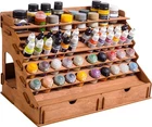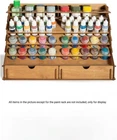 Wooden Craft Paint Storage Rack with 58 Holes for Paint Bottles - Hand Craft Paint Holder Rack with 4 Miniature Stands and Removable Upper Shelf - Paint Organizer for Miniature Paint Set Paint accessories – This Vallejo paint supply storage organizer is made from sturdy plywood without plastic or acrylic - only natural materials. Also, army painter paint rack is very capacious, we designed 2 extra large holes, 12 holes by " diameter, 20 holes by " diameter, and 24 small holes by 1" diameter. On the backside stand of the wooden craft paint storage rack, you can place bottles of any extraordinary diameter. Removable upper shelf – The unique construction of Vallejo paint storage allows choosing your use case. Thanks to the removable upper shelf of the paint storage organizer you can store you can either store more bottles of paint or put on the shelf ready painted miniatures and paint bottles with a larger diameter that do not fit in the paint station's holes. Easy to assemble – In the package you will find details of Vallejo paint organizer that should be assembled and step-by-step instructions. Our advantage is that the wooden craft paint storage rack is assembled without glue, and wooden fasteners are included in the set, so the finished construction of Citadel paint rack will be sturdy and durable. We are also convinced that the process of assembling Citadel paint holders and organizers can also be a fascinating DIY activity! Complete set – Our Citadel paint rack has two drawers for a wide range of art tools, one of which has a removable 8-part divider! It's incredibly convenient cause you can organize the space of craft paint holder rack to your own taste. Also, the backside of paint rack organizer isn't one-piece, but has a stand for large paint bottles that do not fit into the main holes. But that's not all, to make it easier for you to paint the miniatures, the kit includes 4 special miniature stands! Convenient design – paint station produced for miniature painting set and other tools. In our paint holder, you can store Citadel paints, Vallejo paints, Apple Barrel paints, FolkArt paints, Tamiya paints, and others. The laconic design of the army painter paint rack organizer decorates your workplace and makes it more organized. If you like working with paints, you will appreciate the necessity of miniature paint rack. Also, our army painter paint rack organizer will be a great gift!