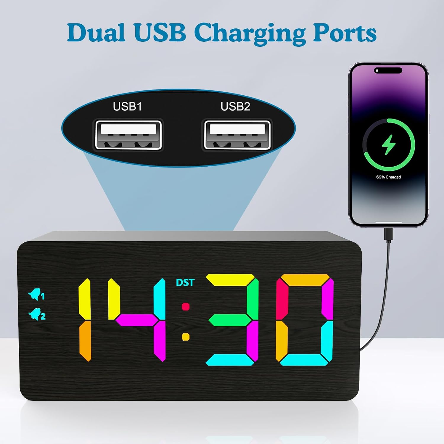 Store New Arrivals Add to Favorite View Feedback Contact Wooden Digital Alarm Clock with Fast Wireless Charger, Dual USB Charging Ports, DST, Dimmable, Snooze, RGB Large Number Display LED Clock for Bedrooms, Living Room, Desk, Table, Bedside(Black) Description Item model number W108 Style Large Time Display Clock Number of Items 1 Power Source Powered by Type-C, Battery Backup Dial Color Black Country of Origin China Theme Nature Wood Are Batteries Included Yes Room Type Bedroom, Living room, Kitchen, Kids Room, Home, Dorm, Dining room, Office, Guest Room, etc. Product Dimensions 5.94"W x 2.76"H Material Wood Operation Mode Electrical Frame Material Wood Age Range (Description) Suitable for all ages Alarm Clock Yes Number of Batteries 1 CR2032 batteries required. (included) Indoor/Outdoor Usage Indoor Item Weight 10.2 ounces Special Feature function(f) {var _np=(window.P._namespace("DetailPageProductOverviewTemplatesJava"));if(_np.guardFatal){_np.guardFatal(f)(_np);}else{f(_np);}}(function(P) { P.when('A').execute(function(A){ A.on('a:truncate:po-attribute-truncate-4:updated', function(data) { var isTruncated = !data.truncateInstance.getIfTextFits(); var seeMoreElement = document.getElementById('po-attribute-see-more-id-4'); if(seeMoreElement) { seeMoreElement.style.display = isTruncated ? '' : 'none'; } }) }); })); Large Time Display with Bold Numbers, 0~100% Stepless Dimmer, 10W Fast Wireless Charging, 8 RGB Colors Display, Stylish Wood Grain Surface, Dual USB Charging Ports, Dual Alarm Clock, Snooze Button, Manual DST, etc. See more Display Type Digital Mounting Type Tabletop Color Black-rgb Watch Movement Automatic Batteries 1 CR2032 batteries required. (included) ⏰【Large Time Display with Bold Numbers】- The large bold 1.8-inch numbers on this 6.6-inch compact digital alarm clock are very easy to read from across the room, it has no complicated settings and is very easy to operate, making it an ideal desk digital alarm clock for kids, teenagers, adults, seniors, especially for the elderly or people with poor eyesight. The RGB fantasy color display makes this large display alarm clock very eye-catching, greatly enhancing your personal taste. ⏰【0%-100% Stepless Dimmer】- Compared with the alarm clocks on the market that only have three or five levels of brightness adjustment, this wooden alarm clock adopts 100-level dimming technology. Customers can adjust the brightness to any percentile(range: 0% ~ 100%), which solves the problem of too bright display at night and helps you fall asleep better. ⏰【Fast Wireless Charger & USB Charging Ports】- Compared with other digital alarm clocks on the market which only have 5W wireless charging, this wooden digital alarm clock is upgraded to 10W wireless charging, which can achieve faster charging speed and save your phone charging time. Dual handy USB charging ports help you charge smart devices and other gadgets without having to look for adapters and other outlets. ⏰【Stylish Wood Grain Surface】- This exquisite digital alarm clock is made of high-quality wood and has a stylish design. It is not only a clock, but also a perfect decoration for your home. You can put it anywhere in your room, on your bedside nightstand or living room table. The stylish appearance and multiple functions make it suitable as a gift for your family or friends. ⏰【Dual Alarm and Manual DST】- It has dual alarms, and each alarm clock has 3 working modes: off, everyday alarm, weekday alarm. The alarm volume is 5 level customizable from very low for light sleepers to extra loud for heavy sleppers adults. There is a DST button on the back, just press the DST button without setting the time, the DST icon will appear on the display and the time will move forward one hour, turn off DST and the time will move back one hour. ⏰【Reliable After-sale Service】- We offer 1-year free repleacment service and after-sale support, if there is any quality problem with URAYCO wooden digital alarm clock, please , 7x24 hours professional after-sale service will provide you with 100% satisfied solution! Product Description 1 Dynamic RGB Display 2 Dimmable Brightness 1 Dual Alarm 2 Volume Adjustable 3 Two Ways Charging 5 Minutes Snooze Mode After the first alarm reminder, you can get 5 minutes of lazy bed time, and the alarm clock will remind you again. 12/24 Hour Format You can set 12H/24H two different display modes according to your reading habits. Convenient DST button The DST button saves you time when Daylight Saving Time is reset. There is no need to manually adjust the time. (requires the correct date) Battery Memory Function The alarm clock built-in battery can be triggered in case of power failure to save the previous settings. ABOUT US We offer the best prices around on high quality products. Our E-store includes media such as books, movies, music and games while offering electronics, toys, sporting apparel, clothing, tools, general home, garden items and more. SHIPPING We are always working hard to ensure your package arrives as soon as possible. Please understand that some factors like weather, high postal traffic, and the performance of shipping companies are outside of our control. We offer free shipping to the lower 48 states and ship within 2 business days of payment, usually sooner. We do not accept P.O. Boxes. Please provide a physical address. For shipping outside of the continental USA, we only use eBay's Global Shipping Program.The item is shipped to KY and then sent to the rest of the world. International customers are responsible for all duties and taxes. Continue to check out in order to calculate costs for shipping the item to your country. Messages regarding eBay's Global Shipping Program MUST be directed at eBay EXCLUSIVELY. RETURNS We offer a 30-Day Return Policy on items which you are not completely satisfied with. You have the option for a full-refund or an exchange of the item. No returns are available on items shipped outside of t