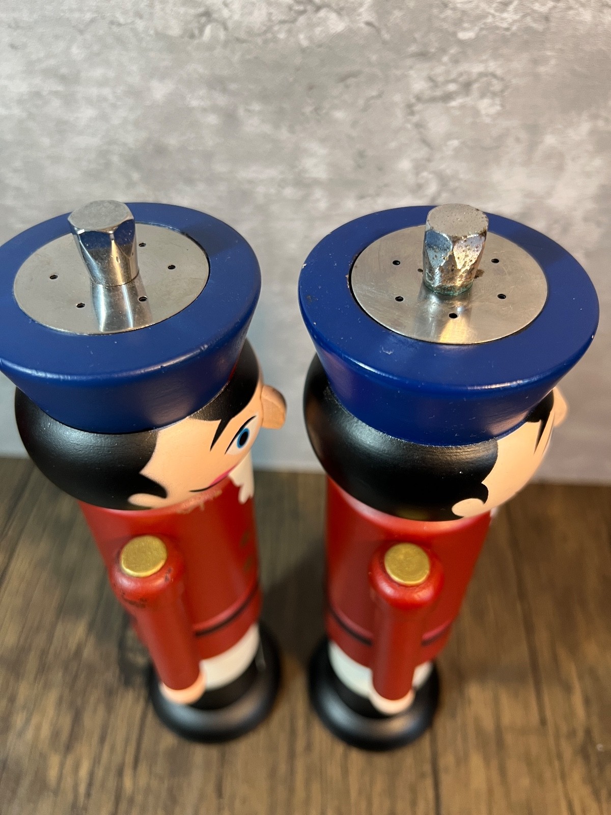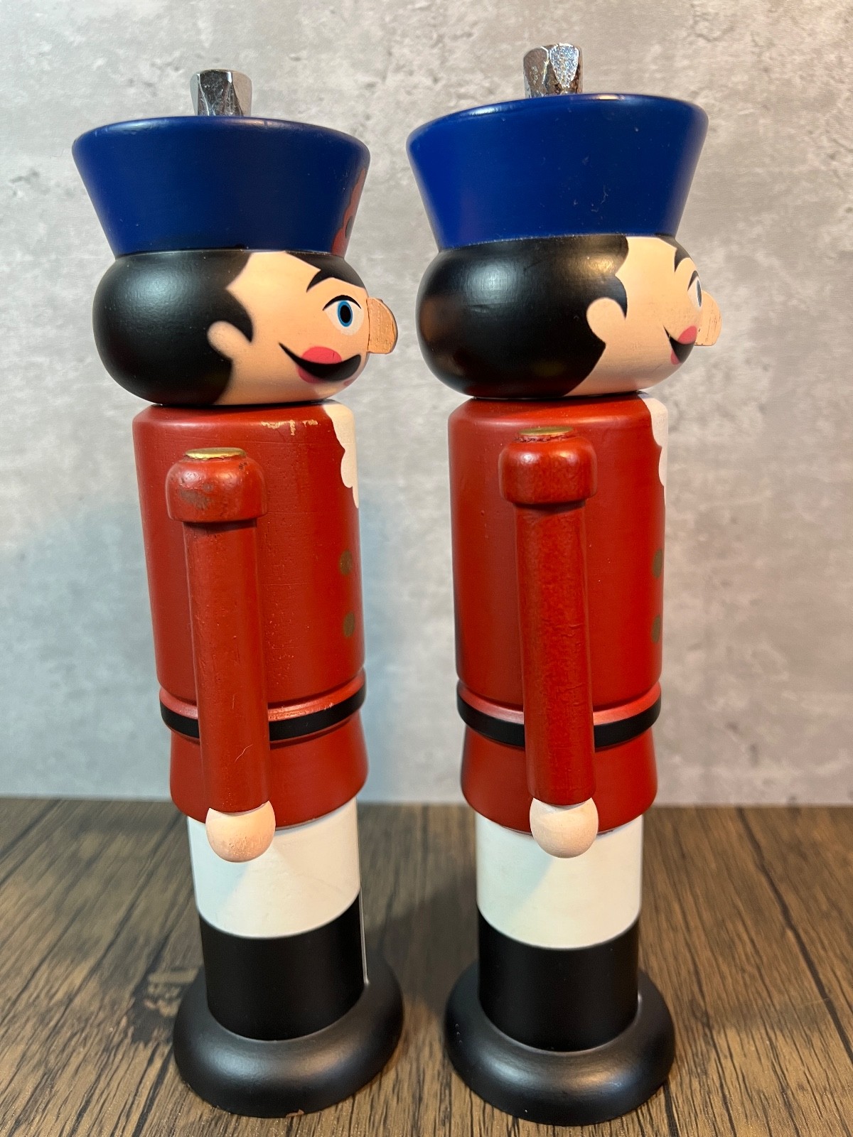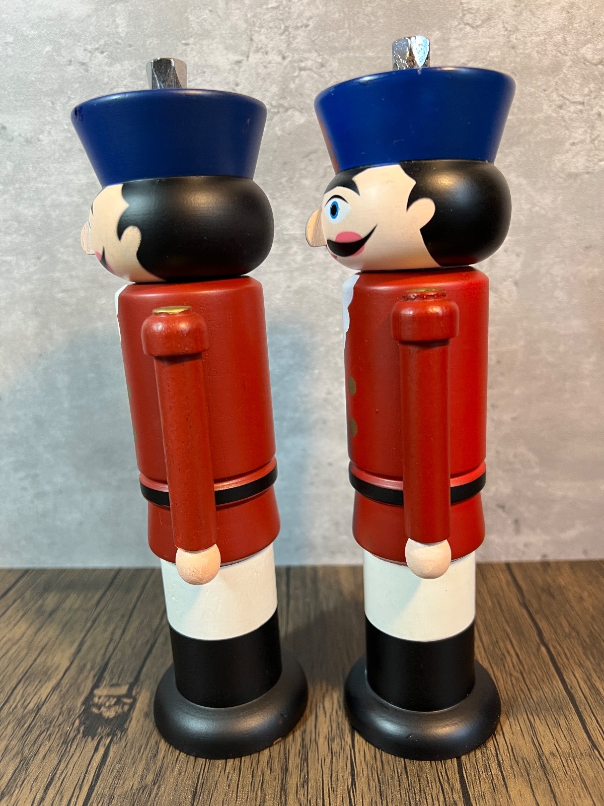 This Wooden Nutcracker Soldier Pepper Mill and Salt Grinder Set is a festive addition to your kitchen, perfect for the Christmas season. Made with a durable wood material and featuring a multicolor design, this novelty set includes a pepper mill/grinder and a salt mill/grinder. The intricate design of the nutcracker soldiers adds a touch of whimsy to your dining table, while the universal food compatibility makes it versatile for any meal. Found at an Estate sale and the one had salt in it , the other looks un used . I will pack with care and get them to you ASAP thanks for looking !