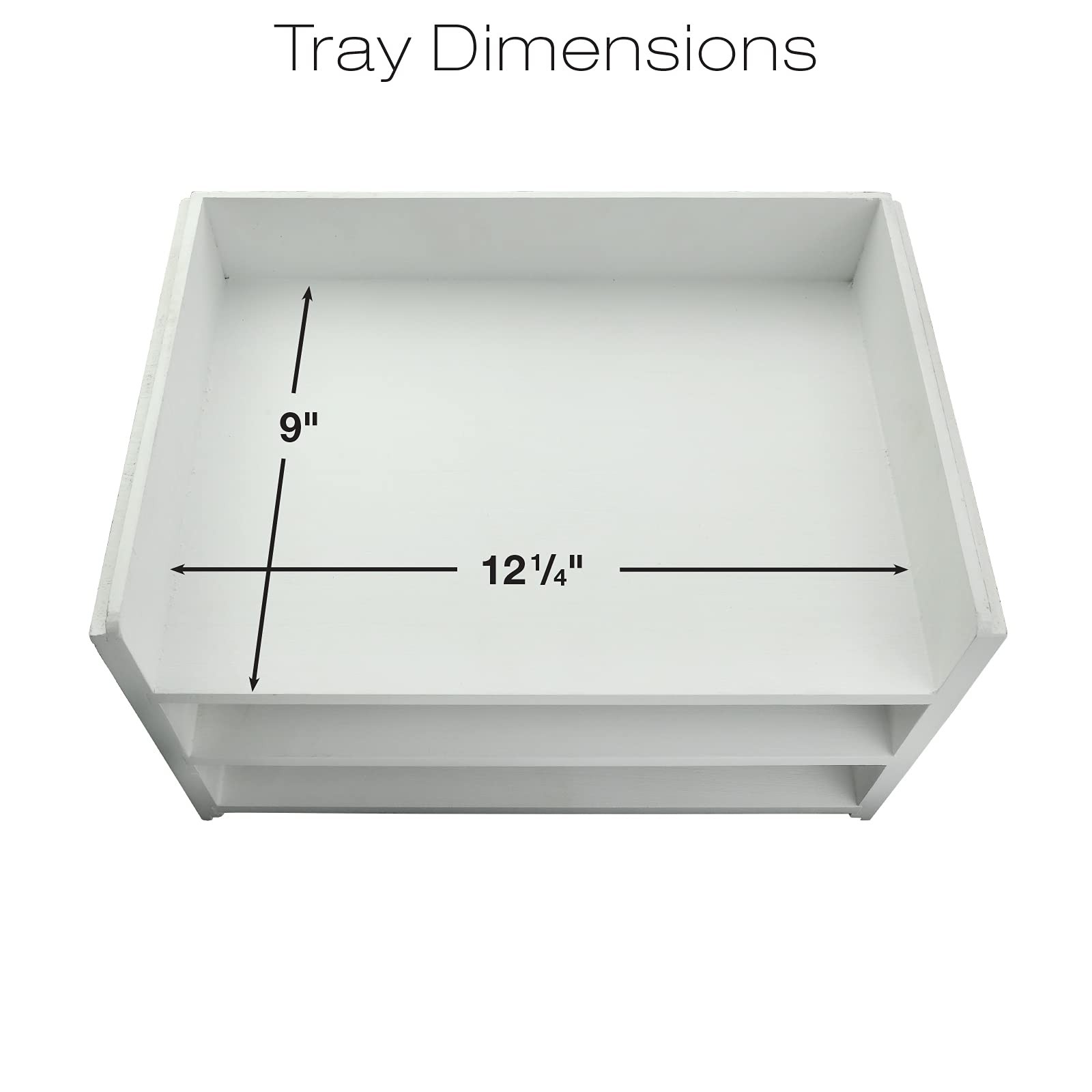 The Excello Global Wooden Stackable Letter Tray Desk Organizer Raise your standards with this fantastic wooden desk organizer. This letter organizer features 2 shelves measuring 2 inches high, and a beveled edge to stack atop another shelf. The sturdy wooden organizer will help keep your desk uncluttered and well sorted. Available in 3 finishes. OVERALL MEASURMENTS 7 3/8 inches Tall 13 1/4 inches Wide 9 1/4 inches Deep SHELF DIMENSIONS 2 inches tall 12 1/4 inches wide 9 inches deep MULTIFUNTIONAL - Enhance your storage space with our wooden stackable letter trays, great for letters, magazines, planners, documents, and note pads! VINTAGE DEISGN - Make an impression or enhance your personal space with this rustic letter organizer. Looks great in any office, available in Black, White, and Natural Finishes. SOLID WOOD CONSTRUCTION - Measuring 7 3/8 inches Tall, 9 1/4 inches Deep, and 13 1/4 inches Wide, this shelf comes full assembled from solid wood in black, natural, or white open-pore finishes that will look fantastic on any desk. EXPANDABLE STORAGE - Each shelf on the Wooden Stackable Letter tray measures 2 inches tall and includes brackets that allow you to neatly stack another shelf on top. GUARANTEED QUALITY - Ships and Services by Amazon with Prime available & A-Z money back guarantee. High quality, heavy duty and BUILT TO LAST! Made by . We are a family-owned USA company and we have been making quality products for over 50 years.
