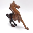 Wooden Stallion Horse Sculpture Figurine 7" Hand Carved Antique Equestrian Pony He measures approximately 6.75" tall x 7" long Lots of movment in this piece. All items are packaged with care and shipped within one business day or sooner. Thanks for stopping by!