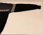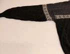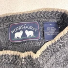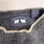 Item Details Section This vintage Woods & Gray pullover features a sophisticated tri-blend fabric that offers the warmth of a heavyweight knit with the soft, luxurious feel of silk. Features: Brand: Woods & Gray Color: Two-tone Charcoal Gray and Black with a Cream/Tan Fair Isle accent band. Closure: Pullover with a reinforced crewneck. Pockets: None. Details: Intricate Fair Isle geometric pattern across the chest and sleeves; ribbed cuffs and waistband with contrast tipping. Material: 50% Silk, 30% Cotton, 20% Acrylic. Care: Machine wash cold with mild soap, delicate cycle; dry flat.
