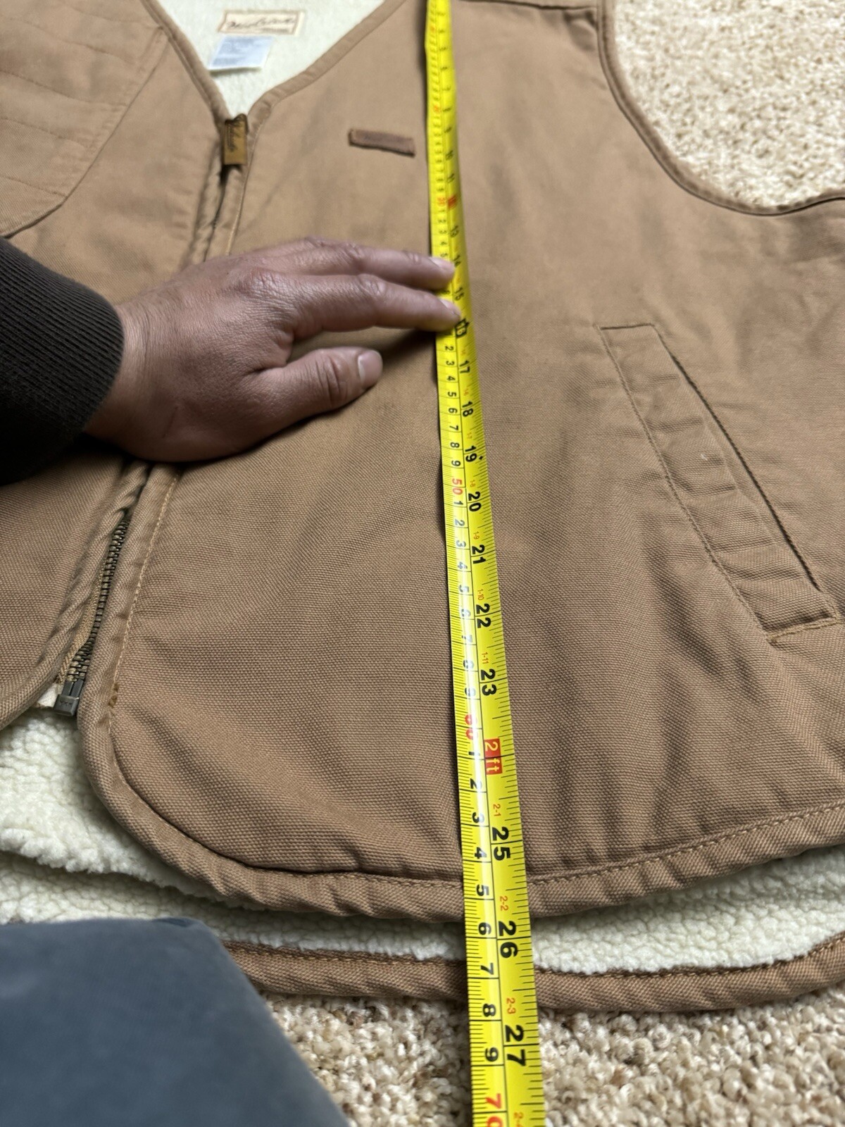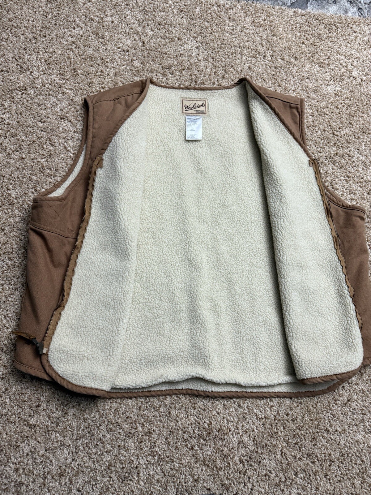 Woolrich Men's Vest Sherpa Lined Size XL Brown Shooting Padded Shoulder No holes no stains no rips See pics for measurements and conditions before you buy Thanks ๐๐ผ