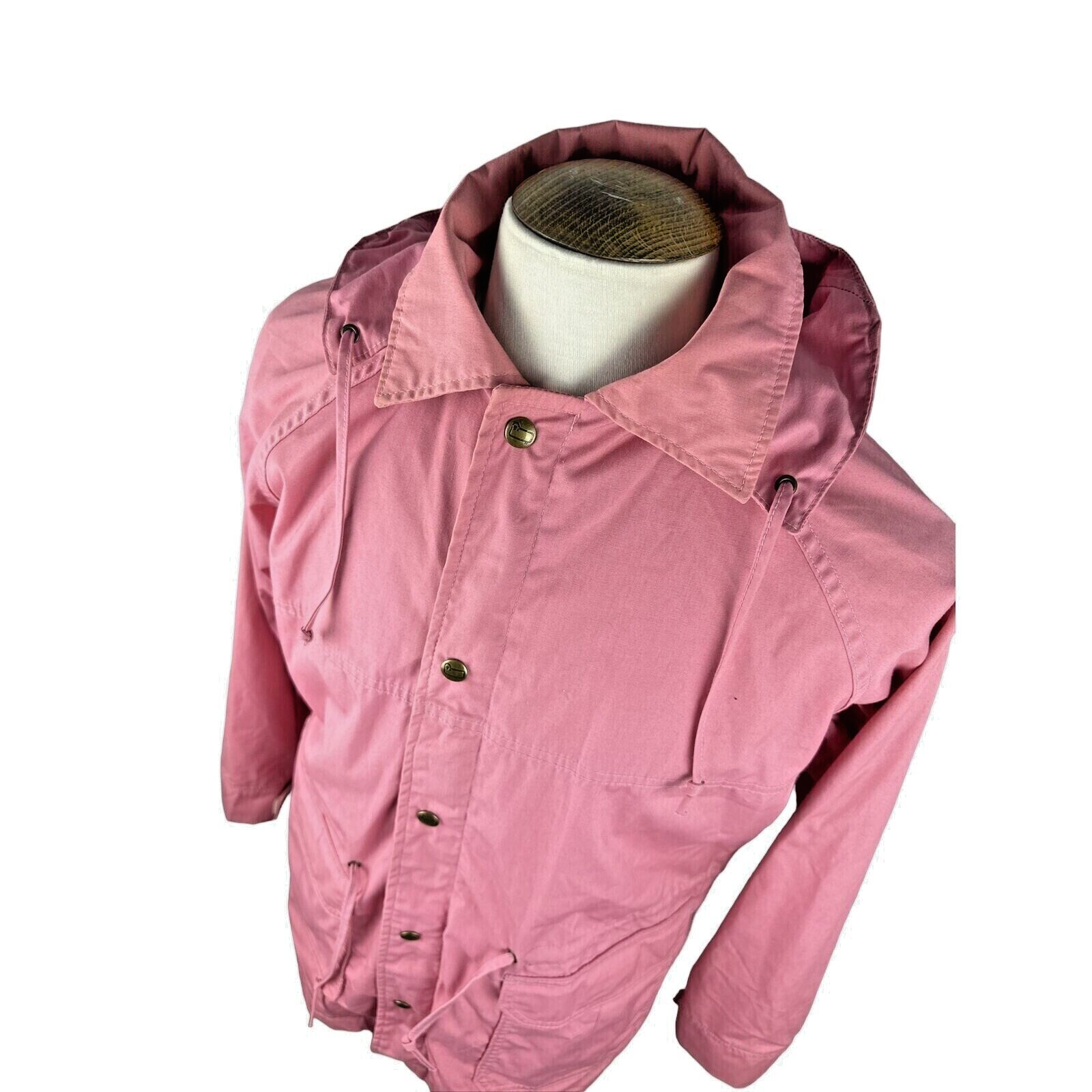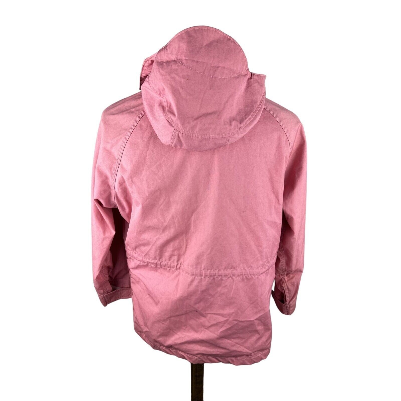 This Woolrich Women's Pink Hooded Jacket in size Large is a stylish and functional outerwear piece perfect for autumn, winter, and spring seasons. Made in the USA from waterproof polyester and nylon lining, it features a mid-length design with long sleeves and a hood for added protection against the elements. The jacket includes practical pockets and the Woolrich logo as accents, making it suitable for travel, casual, formal, or business occasions. This overcoat has a regular fit and is designed with a canvas fabric type, ensuring both comfort and durability for the wearer. Pit to Pit: Approx 24" Collar to Hem: Approx 29"