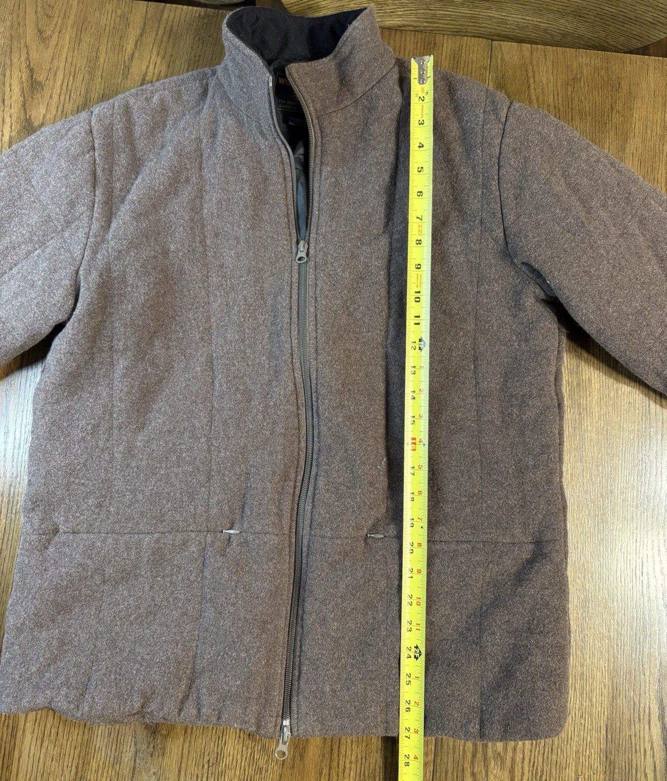 The Woolrich brown Performance Jacket is a stylish and versatile outerwear option for women. Made from 100% wool with a chiffon fabric type, this mid-length jacket features a zip closure, band collar, and embroidered accents. The jacket is lined with polyester, providing warmth weight of 500, making it perfect for winter, fall, and spring seasons. With a classic yet modern design, this Woolrich jacket in charcoal heather color is sure to add a touch of nature-inspired charm to any occasion.