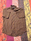 Woolrich Mens shirt. Size large. Collared, button up orange check. Small square black, orange and yellows. One pocket in front. 100% cotton. Made in India. #6671. Lovely shirt, no stains, tears, or rips. All season.