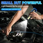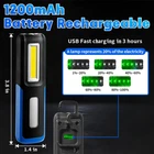 300 Lumen Portable COB LED Flashlight with Rechargeable Work Light Magnetic Base -The essential working tools of progress:our led lights are top quality lighting products with leading-edge technology that meets the highest professional standards increasing brightness and efficiency. It is suitable for multi-angle illumination with led lights indoors such as home work or outdoors activities As rechargeable emergency work light stick,you can find its importance in emergency case.It is USB rechargeable and built with a Lithium Ion 1200mAh battery that has a charge time of 3 hours. Includes overcharge protection and auto idle mode. Description: - Water-resistant but do not put it into water,you can use it outdoor any time - USB Charge:when it is charged,the five indicator lights are jumping one by one,when five indicator lights keep on,it means the battery is full. Specification: Product Name: Recharble work light Material: TPR Product Size: 6.1*1.57*0.78 inch Unit Weight: 4.6oz Type of Bulb: 3W LED(head)+3W COB LED(side) Power Source: Rechargeable Battery Type: 3.7v,1*1 8650 lithium battery,1200mAh(included) Working Time: Around 2.5hrs Charging Time: Around 2.5-3hrs Input MICRO USB Package included: ·1 x Rechargebale COB work light ·1 x Micro USB charge cable 【Super Bright & 2 Light Modes:】1000 lumens high-brightness COB work light with spotlight & floodlight: It features with 2 light source: led flashlight and led work light. Floodlight range 400 square feet. 【Rechargeable & Battery Indicator】It has the power indicator function to help users know the remaining power of the work light. One indicator represents a 20 percent of the battery level. 【Hook & Strong Magnetic Base:】Our rechargeable work light comes with Built-in strong magnet which make it can be firmly secured to car, truck or any other metal surface.The 360° swivel hook design allows the work lamp to be hang on objects such as tents use as camping light. 【Durable Material & Swivel Bracket:】This magnetic light is made of Thermoplastic Rubber(TPR) , Anti-slip ,Scratch-resistant and good feeling.180 degree rotated bracket with strong magnet provide multi-angle illumination. 【Portability and Versatility:】The led light is small enough that it can be easy to carry and fit in many different places.Cordless and rechargeable light make it as magnetic flashlight, portable light, mechanic light great for home,indoor and outdoor, Car repairCamping, Hunting, Fishing, Reading, working on electronics, emergency roadside repairs, or multipurpose work etc
