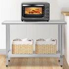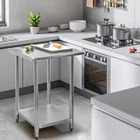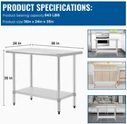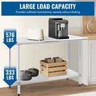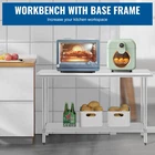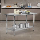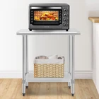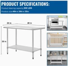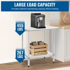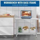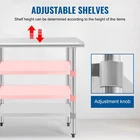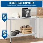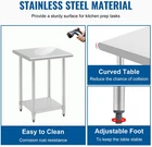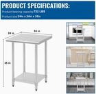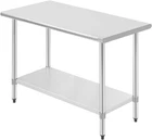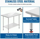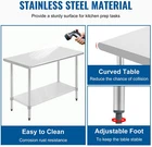 🍽️Multiple Application-The work table is a good choice to put it in your kitchen, restaurant, workshop,garage, bar, warehouse or any other commercial setting. We have different sizes of the work table ,you can choose the most suitable size for your place of use. 🍽️High Quality Material-Our kitchen work table is made of high quality stainless steel, anti-rust, and not easy to wear and tear.Easy to clean and sterilize, Using rag or paper you can easily clean it quickly.Metal prep station tables are superior to wood or glass. 🍽️Adjustable Bottom Plate-The kitchen work table has two layers,you can adjust the bottom plate to different heights according to your requirements.It can offer you enough storage room for microwave oven,juicer or any other tools. 🍽️Easy Assembly-According to the instructions in the manual, you can complete the assembly in 15-20 minutes.The four legs of our kitchen work table are adjustable and can be used anywhere,You can freely change the height of each metal work table foot to suit your demands. 🍽️Customer Guarantee-Never worry about the quality of our products.If there are any problems with the stainless steel work Durable Stainless Steel This economy work table features durable stainless steel, providing strength and durability, preventing crack, rust, and deformation. A smooth surface allows for effortless cleaning and keeps its gloss. 1046 Lbs Load Capacity Our kitchen work table is made of high quality stainless steel and galvanized sheet, which improves the service life of the product. Adjustable Undershelf You can adjust the bottom plate to different heights according to your requirements, but it should be noted that when adjusting, you'd better first fix the diagonal at the same height. Adjustable Table Foot The adjustable table foot can effectively help the worktable to be placed smoothly in different places. Stainless Steel Table Top Stainless steel wire drawing table makes the product more wear-resistant, increases the service life of the table, but also makes the table look more beautiful. Round Corner Table Edge Design The design of round edge table greatly improves the safety factor of the product in the process of use. Easy to Assemble Our instructions are very concise. It takes 20-30 minutes to open the package and assemble the product. Wide Use Scenarios The stainless steel table you deserve in your home or commercial kitchen, laundry room, backyard, garage, or wherever it is needed; You can use it to store your bowls, kettle, oven,coffee machine, and so on. Stainless Steel Prep Table Stainless steel desktop and table foot greatly improve the service life of the kitchen work table. Adjustable table feet make the stainless steel worktable suitable for all kinds of places . Stainless steel quality of metal work table makes cleaning easier. The lower shelf of the kitchen work table provides more storage space.