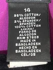 Great Pre-Owned Condition (see pics for details) Features: • Flaws: No Holes or tears - discoloration back of sleeve - pic shown • Please see photos for measurements (in inches) • Smoke Free Home • Washing Instructions: Machine wash cold Size: 14 Super Fast Shipping: Ships out the same day or next business day! Style Profile: Everyday, Work Wear, Office, Business, Casual, Capsule, Bold, Career, Church, Choir, Resort, Statement, Classic, Collar Neck, Drape, Flowy, Solid, Knit, Cotton Touch Fabric, Ribbed, Corduroy, Career, Work Wear, Office, Floral, Retro, Stretch, Concert, Festival, Summer, Spring, Travel, Cruise, Pink, Purple, Tan, Blue, Versatile, Eclectic, Lined, Soft, Cozy, Comfortable, Mature, Pull On, Vintage, Antique, Lightweight, Year Round, Bomber, Curvy, Office, Professional, Art, Music, Festival, Country, Concert, Church, Teacher, School, Game Day, Preppy, Relax Waist, Side Slit, Beach, Pool Party, Cottage, Granny, Artsy, Resort, Country Club, Classic, Soft, Comfy, Cozy, Roll Tab, Coverup, Travel, Vacation, Kentucky Derby, Weekend Wear, Feminine Detail, Statement Making Look, Trendy, Timeless, Ease, School Pictures, Family Pictures, Outdoors, Hiking, Walking, Active, Performance, Animal, 4-H, Themed Party, School Party, Event, Party, Special Occasion, Date Night, Girl’s Night, Guys’ Night, Everyday, Capsule, Minimalist, Basic, Staple, Wardrobe, Flounce, Feminine, Cowgirl, Honky Tonk, Sheer, Mesh Item sprayed disinfectant before folded and stored in plastic bag.