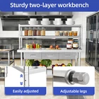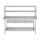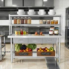 Workbench 60"x24" Stainless Steel Table 2-Tier Shelf 3 Smooth Drawers Overshelf Product Description NOTE: Professional Installation would be Highly Recommended. Description: 1. Color: Silver 2. Material: Stainless Steel 3. Product Type: Work Tables 4. Mount: Free Standing 5. Style: 2 Tier 3 Drawer and Overshelving 6. Special Features: 2-Layer Workbench, Adjustable Leg, Silent and Smooth Drawers, Convenient Handle, 201 Sturdy Stainless Steel Features: Heavy-Duty Stainless Steel Workbench for Maximum Performance Premium Quality & Superior Strength: Built with high-grade 201 stainless steel, this workbench ensures exceptional corrosion resistance, rust prevention, and an easy-to-clean surface for long-lasting durability. The reinforced 0.6mm thick stainless steel plate and sturdy tube construction support up to 1,460 lbs, making it perfect for heavy-duty tasks without bending or deformation. Spacious Storage with Dual Adjustable Shelves: Keep your workspace organized with two movable stainless steel shelves, offering customizable storage options to keep essentials within reach. The removable table stand adds flexibility, allowing seamless access to tools and equipment for a more efficient workflow. Smooth & Silent Drawer System: Featuring a noise-free stainless steel drawer, this workbench ensures effortless organization while providing smooth and quiet operation for easy tool storage and retrieval. Multi-Functional & Ultra-Sturdy Design: The 2-tier structure provides a versatile workspace that accommodates microwaves, meat grinders, and essential tools while also serving as a sturdy surface for food prep, appliance setup, or professional work. Adaptable for Any Environment: Designed for maximum versatility, this stainless steel table is ideal for kitchens, garages, workshops, restaurants, bars, schools, hospitals, and more. Whether used as a workbench, prep table, or utility station, it delivers unmatched durability, reliability, and efficiency for any setting. Upgrade to a High-Performance Workbench That Works as Hard as You Do. Dimensions: 1. Product Dimensions: 60"L x 24"W x 54.5"H 2. Tabletop Weight Capacity: 480 lb 3. Overshelves Weight Capacity: 360 lb 4. Item Weight: 101.41 lb Package Included: 1 x Work Tables 1 x Instructions Manual 1 x Pack of Accessories Shipping 1. Normally the item will be dipatched within 1 business day if payment is cleared before 12pm PST. 2. Please verify the correct shipping address in your PayPal account before making the payment. We only dispatch the item to the address that is sent to us at the time of checkout. 3. We don't ship to Hawaii, Alaska, Puerto Rico, APO/FPO/PO Boxes. 4. We don't provide local pick-up service. 5. Normally we will use USPS, UPS, FedEx & LTL to dispatch items. Payment 1. We accept PayPal and credit card. 2. We will ship to the confirmed Paypal shipping address that is provided with the payment only. Return 1. 30 days Money Back Guarantee. 2. Please contact our customer service to receive a RMA form first if want to return the item. 3. All returned items MUST in new condition with the original package. Contact If has any problem, please contact us by sending an ebay message. Our customer service will resolve the problem as soon as possible. On Jan 30, 2025 at 01:55:31 PST, seller added the following information: