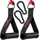 Working Out Handle Gym Equipment for Strength Trainer, Pull Up Home Gym for Pilates Yoga (Black) UPGRADED LARGER D RING : We designed a larger D ring for this Resistance Band Handle . allows you to use larger bands that offer 100lbs (1.77 inches wide bands ) of Pull Up Assistance Bands FEELS SUPER COMFORTABLE EXERCISE HANDLES: The surface of the handle is made of soft sponge material,Feel comfortable. CABLE MACHINE ATTACHMENT HANDLES:Heavy duty rings easily connect to your CABLE MACHINE , Pulley System Gym or exercise bands. They withstand a lot of weight, too. Ultra-lightweight Resistance Band Handle :Very easy to carry, you put the handle in your backpack at will, it will not add extra weight to you,You can keep up with your workout progress anytime, anywhere ULTRAL HEAVY DUTY Metal Hooks : The package comes with 2 black Heavy Duty metal Carabiners , Make it easier for you to connect the handle to Cable Machines or Pulley System WARRANTY: We offer a 1 year, no-hassle warranty. If you have any issues, contact us and We will serve you.