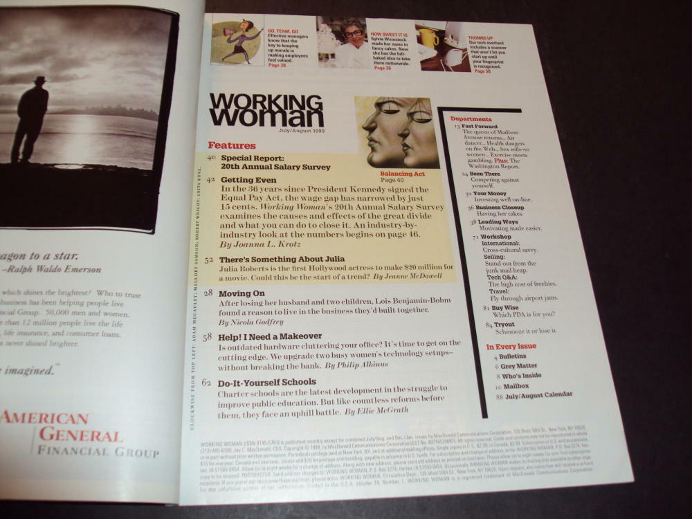 JJJ Collectibles Long-Lost Treasures from Swan's Magazine Mart (1930-2007) Magazines Music Memorabilia Comics Sign up for Newsletter One of the Long-Lost Treasures from Swan's Magazine Mart Vintage Issue of Working Woman Magazine August 1999 ABOVE AVERAGE Condition: Exterior shows light wear, interior is very clean. Probably Never Read. All magazines are boarded and bagged Welcome to our selection of comic books, vintage magazines, music memorabilia, posters, records, toys, books, pulps and more. We have a total inventory of 5-10 million items. We have thousands of positive feedbacks from happy customers because we sell good products, we are honest, and we stand behind our policies. We've done our best to describe and display each item as accurately as possible, but we do welcome any questions you may have. If you like our selection, our prices, and our service, you might want to consider signing up on our store's mailing list. We will not give out your contact information to 3rd parties. Please add us to your list of favorite sellers and tell your friends. We accept PAYPAL, VISA, MASTERCARD, DISCOVER, and AMERICAN EXPRESS. Prompt payment is appreciated and required within seven days of purchase. We ship WORLDWIDE. We do combine shipping. If you are bidding on multiple auctions please let us know. Our international shipping costs are our ACTUAL costs for postage & materials. We endeavor to ship all items within 24 hours of receiving payment or by the next business day. Please email to let us know if your item does not arrive in a timely fashion. NOTE: Some International packages have to go First Class. First Class International cannot be tracked or insured. If you have questions or comments for us, please use the 'Ask seller a question' link above to contact us. If there is a problem with your purchase, for any reason, please contact us so that we can resolve it. We do have a return policy if you aren't happy. Just contact us by email or phone within three days of purchase, explain your problem, and if we can't make it right we will accept the return of the item in saleable condition. On receipt of the item, you will get your money back. This listing created with GLETech Multiple Selling Channel tools.
