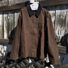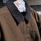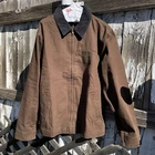 GARMENT DYED BEAUTIFUL WASH VINTAGE COLOR CONTRAST COLLAR Embrace the classic appeal of vintage workwear with our spruce green corduroy collar work jacket. Tailored for a regular fit, this medium-sized jacket is a testament to timeless style and functionality. The robust cotton outer shell provides durability, while the polyester lining ensures comfort during wear. Accented with a distinctive quilted design, the jacket offers a solid pattern that complements its grunge and '90s theme. The convenient zip closure allows for easy donning and doffing, making it a practical addition to any workwear wardrobe. Whether it's for daily wear or a retro-inspired project, this unbranded jacket is a versatile piece that speaks to a bygone era of craftsmanship.