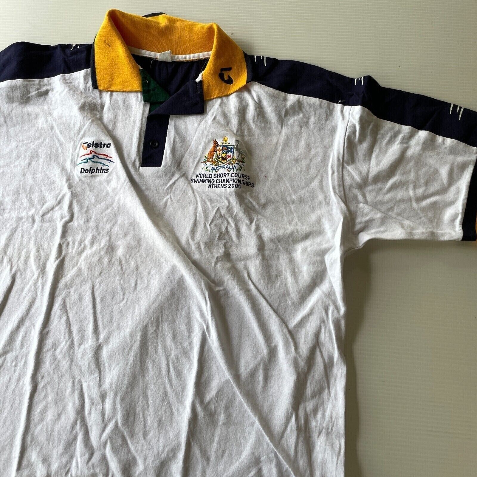 Welcome to our Ebay Store~! Item: World Short Course Swimming Championships Athens Polo Shirt Mens Size L White Condition: Pre-Owned Very Good Condition Measurements LAYING FLAT: Armpit to Armpit: 59 cm Shoulder to Shoulder: 57 cm Length: 67 cm == Shipping: Shipped Fast and Tracked with Australia Post Standard Parcel 2-3 Day Handling Time Maximum