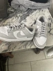 Step into comfort and style with these sleek Nike Dunk sneakers in a versatile gray shade. Designed for women with a size 7 US (7 UK) foot, these athletic shoes are ideal for walking and everyday wear. The durable leather upper provides a snug fit and long-lasting support, making them a reliable choice for your active lifestyle. Crafted to deliver both performance and fashion, this pair belongs to the iconic Nike Dunk product line, known for its bold aesthetics and high-quality construction. The shoes are not customized, ensuring you get the original design and brand experience Nike is renowned for. Enjoy a clean, sophisticated look that pairs well with any outfit.