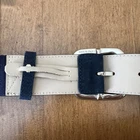 Elevate your wardrobe with the Worth New York Women's Genuine Leather Belt, a timeless accessory that blends functionality with high-end fashion. Crafted from premium leather in a sophisticated navy blue, this belt is a versatile addition to both casual and formal ensembles. Its sleek design features a striking silver buckle that adds a touch of elegance and ensures a secure fit. The belt is designed to cater to a size L, offering an adjustable option to ensure the perfect fit. Its solid pattern and minimalist style make it an ideal choice for those who appreciate a clean aesthetic, whether it's for a day at the office or a night out. The belt's durable leather material and subtle accents, such as the understated buckle, reflect a commitment to quality and understated luxury.