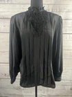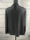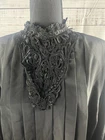 This Worthington blouse is a sophisticated piece for women in size 12, featuring a black color with a crotchet floral design and a stylish mock neck with ruffle accents. The long sleeves and button front closure add a touch of elegance to the classic fit. Made from lightweight chiffon fabric, this versatile blouse is suitable for various occasions such as travel, weddings, parties, workwear, or casual outings. Perfect for all seasons, this chic top exudes a timeless charm that can be effortlessly styled for both formal and everyday wear.