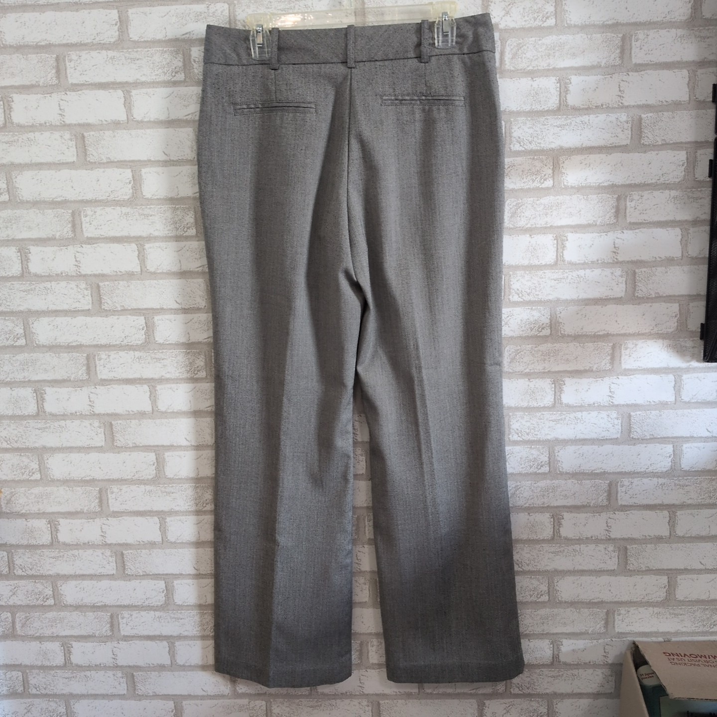 These Worthington charcoal gray modern fit trousers are a versatile and stylish addition to any woman's wardrobe. Made from a blend of polyester, spandex, and rayon, these pants offer a comfortable and flattering fit. With a high-rise waist and straight leg style, they are perfect for a variety of occasions. The jacquard pattern and flat front design add a touch of sophistication, while the zip closure and machine washability make them easy to wear and care for. These pants also feature pockets for added functionality, making them a practical and chic choice for any season.
