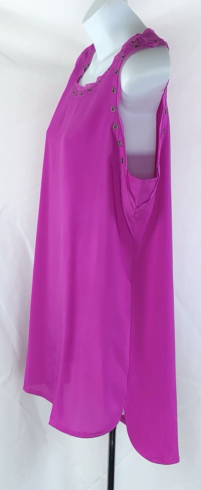 Worthington sleeveless chiffon top L purple rivets raw edge Metal Club Punk Chest 41 " (underarm seam to seam x2) Length 27 " (front shoulder to hem) Excellent Fashion Gem Fast shipping , same or next business day with tracking number for confirmation Thank you Questions? Please let me know I answer questions promptly Have a great day! WalkupandDeal offers great deals on previously loved items....... We inspect each garment for any flaws the item may have: missing buttons,holes,spots,tears or pilling. Our suppliers are carefully selected, so we only offer items that are in Great with minimal wear ,excellent,nearly new or New with tags condition. Information on each item can be found in the "item specifics" tab, including: Size, measurements,fabric content and care instructions. Our faculty is a non smoking environment and each item is laundered & steamed prior to listing and shipping. We strive for every customer to be happy with their items and as always offer a "return for any reason" policy...... ..... Thank you for shopping with us!!!