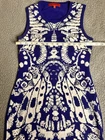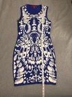 Wow Couture Dress Blue And White Womens Size Large Cutout Back 3 smaller marks on front as shown in photos could possibly be cleaned out measurements are in photos SkU(A44)