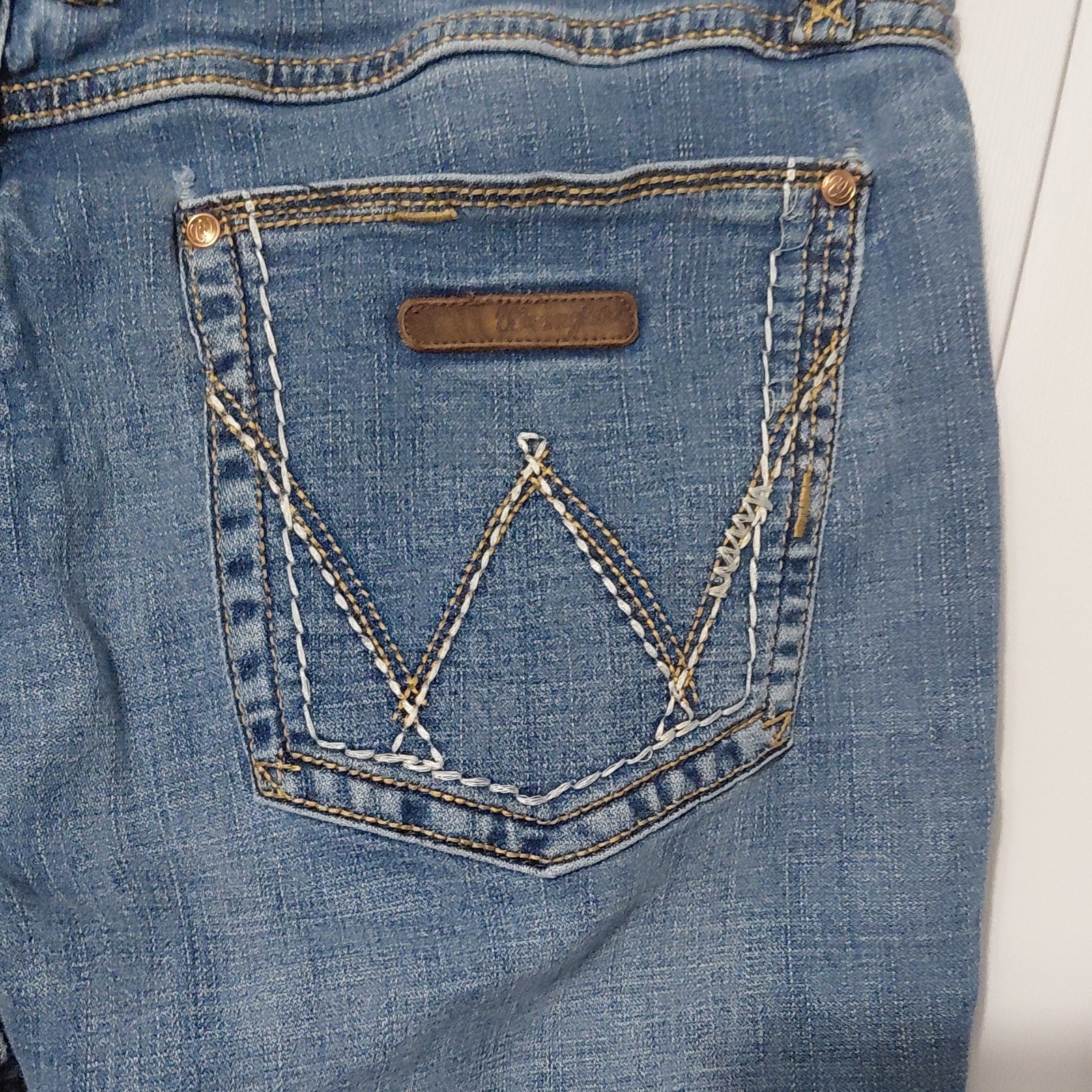 Wrangler Blue Denim Jeans Bootcut Medium Wash Solid Stretch 5-Pocket Women