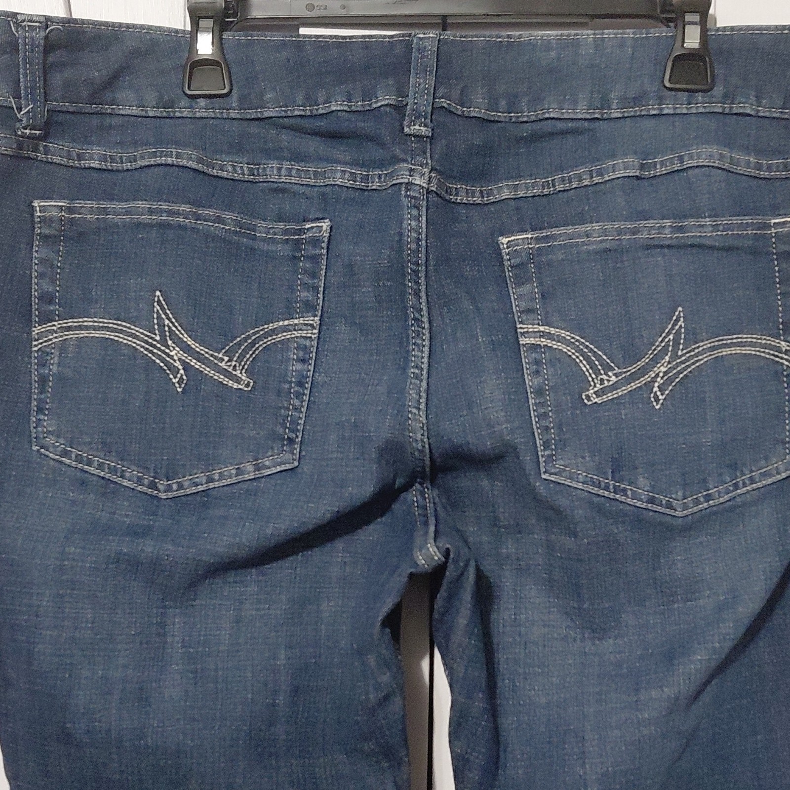 Wrangler Blue Denim Jeans Bootcut Medium Wash Solid Stretch 5-Pocket Women