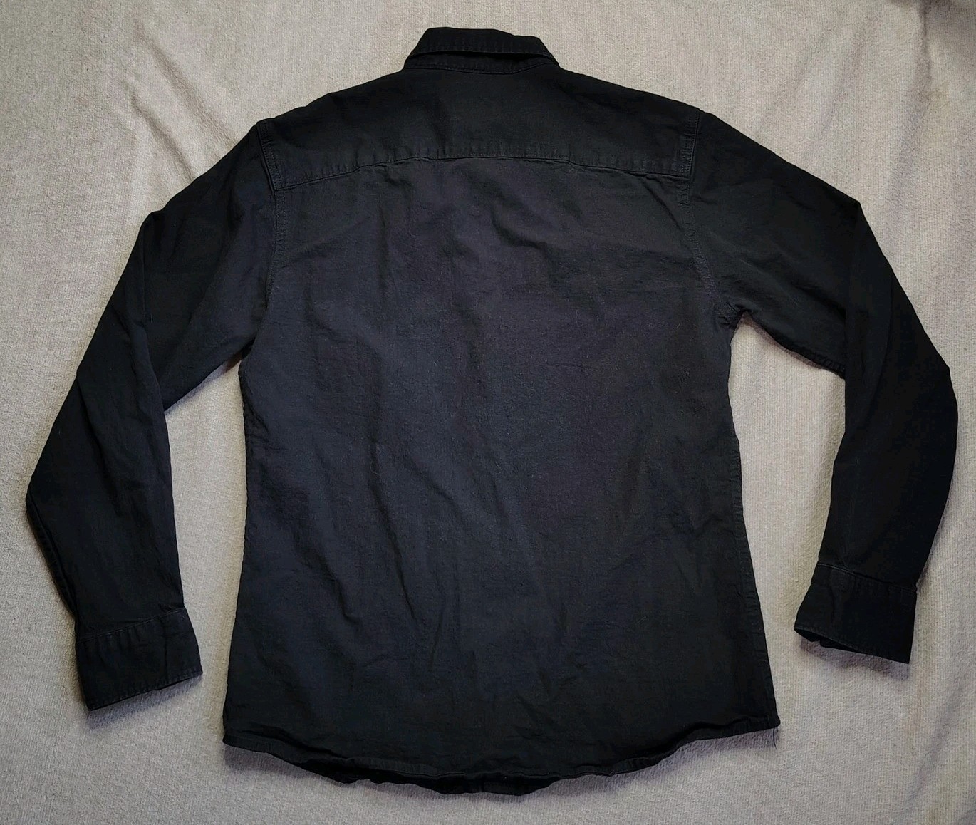 In good condition with no rips/stains/holes. Men's size medium. Measurements: • Chest: 21 in • Sleeve Length: 25 in • Length: 28 in Wrangler men's black long sleeve snap front western cowboy shirt. This shirt features two chest pockets with snap closures and a classic pointed yoke detail on the front and back. Sleeve Length: Long Sleeve Department: Men Fabric Type: Cotton Blend Closure: Button Accents: Button Pattern: Solid Material: Cotton, Spandex Features: Stretch Collar Style: Button-Down Type: Button-Up Neckline: Collared Occasion: Casual, Workwear, Travel, Business Season: Spring, Fall, Summer, Winter Chest Size: 42 in Keywords: Wrangler shirt, mens western wear, cowboy style, snap button shirt, black button up, long sleeve shirt, double pocket, traditional western, denim style, casual shirt, workwear, ranch wear