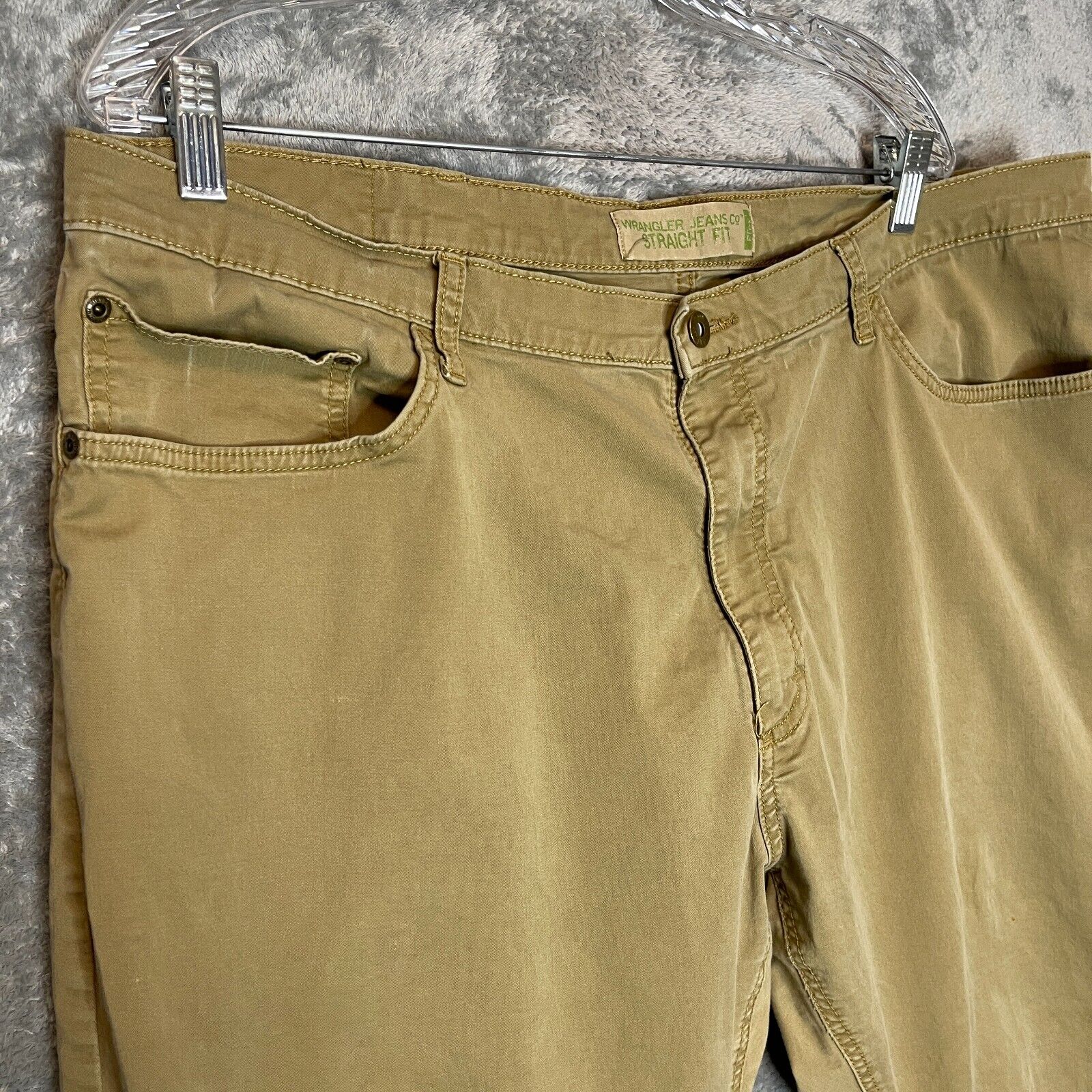 Good Pre Owned condition. There is a small stain on the front left leg. Please see photos for details. *The size tag has been completely worn off, so size was determined according to the measurements. SUPER FAST SHIPPING!!! We ship next business day! If you aren't happy with your purchase we offer 30 day FREE returns. No questions asked! Wrangler Jeans Co Men Straight Fit 5 Pocket Stretch Mid Rise Khaki Chino 40x29*