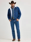 WARM, WESTERN STYLE. Raved about by our customers, the Western Sherpa Lined Denim Jacket features tried and true style you will go back to time and time again. This lined jacket has western-inspired details like flap front pockets with snaps and 'W' stitching, side hand pockets, button front and a warm, cozy sherpa lining. Made from a heavyweight broken twill, this timeless jacket is a stalwart of your closet that you'll reach for again and again. Fit: Regular Lining: Sherpa Sleeve Length: Long Front Closure: Buttons Front Pockets: Two front chest pockets with button flap closure & two side seam pockets Collar: Spread Cuff: One Snap Closure Waist Hem: Straight Bottom ========================================================================== Color: Denim (74255PW) Color: Blue - Dark Fabric: 100% Cotton Heavyweight Prewashed Denim, 14.75 oz. Pattern: Solid
