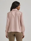 Brand new with tags Women's Size Brand: Wrangler Retro Color: Light Pink Style # 112356669 Long Sleeve Satin Rodeo Pearl Snap Western Shirt Top Blouse Approx Measurements: Pit to Pit x Length Medium - 21"x23" Large - 22" x 24" XL - 24" x 25" XXL - 26" x 25"
