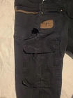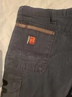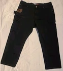 This Wrangler Riggs Carpenter Cargo Pants in size 40 feature a durable canvas fabric in black with brown leather accents , perfect for workwear or outdoor activities. With a relaxed fit and mid-rise design, these pants offer comfort and functionality, complete with a zip closure and cargo pockets for added convenience. The pants also feature the Wrangler logo accent and a straight leg style, making them a versatile piece for a grunge or streetwear-inspired look. Made of cotton and machine washable, these pants are a practical choice for everyday wear. Great pre-owned condition. Stored in AC pet smoke free facility. Freshly Laundered. Packed and ready to ship. Thanks for shopping by.