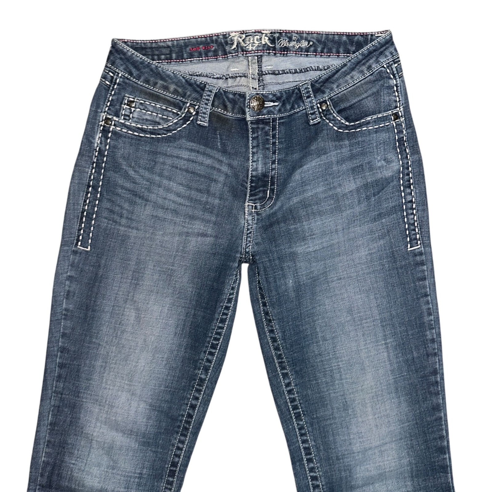 Features: • Brand: Wrangler • Type: Jeans, Bottoms • Style: Bootcut, Boot Cut • Line: Rock 47 • Front: Flat • Season: Spring, Summer, Fall, Winter • Pattern: Solid • Made in Tag is faded • Care: Tag is faded • Rise: Low Rise • Color: Blue, Silver, Cream • Wash: Medium • Features: Embroidered, Rhinestones, Embellished • Closure: Zipper Fly • Material: Denim, Tag is faded • Size: Junior's 9, Tag is faded, Check measurements prior to purchasing • Condition: Good, some fading and wear, Laundry scent • Other: Western, Cowboy, Cowgirl, Dance, Rodeo, Show Measurements are Approximate: Length: 47 in / 119 cm Waist: 15 in / 38 cm Hips: 19.5 in / 50 cm Front Rise: 9 in / 23 cm Thigh: 11 in / 28 cm Inseam: 36 in / 91 cm Width at hem of leg: 9 in / 23 cm Orders shipped within 1-2 business days. 01127010001